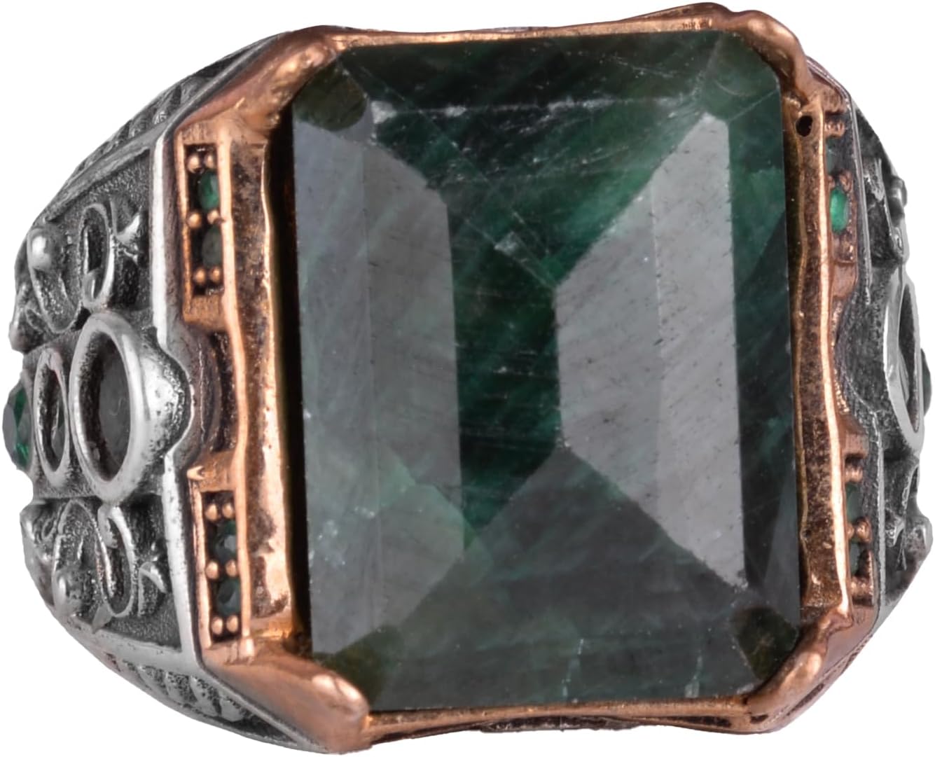 925 Ayar Gümüş Yüzük - Gerçek Doğal Taş Yüzük - El Yapımı Yüzük (Zümrüt)