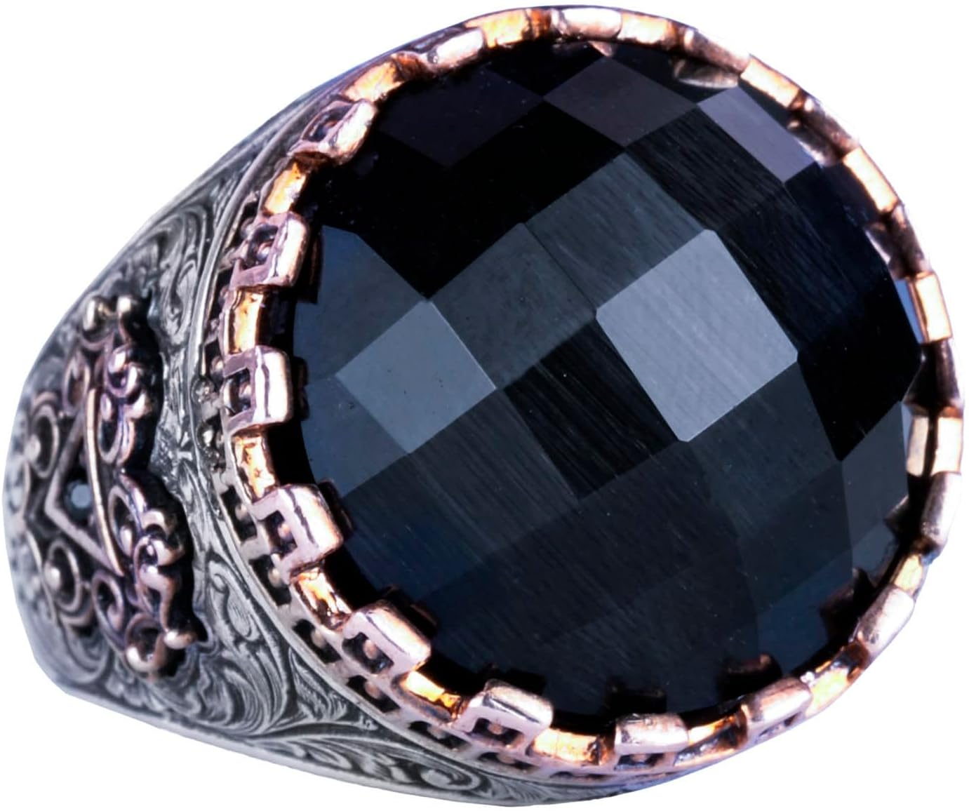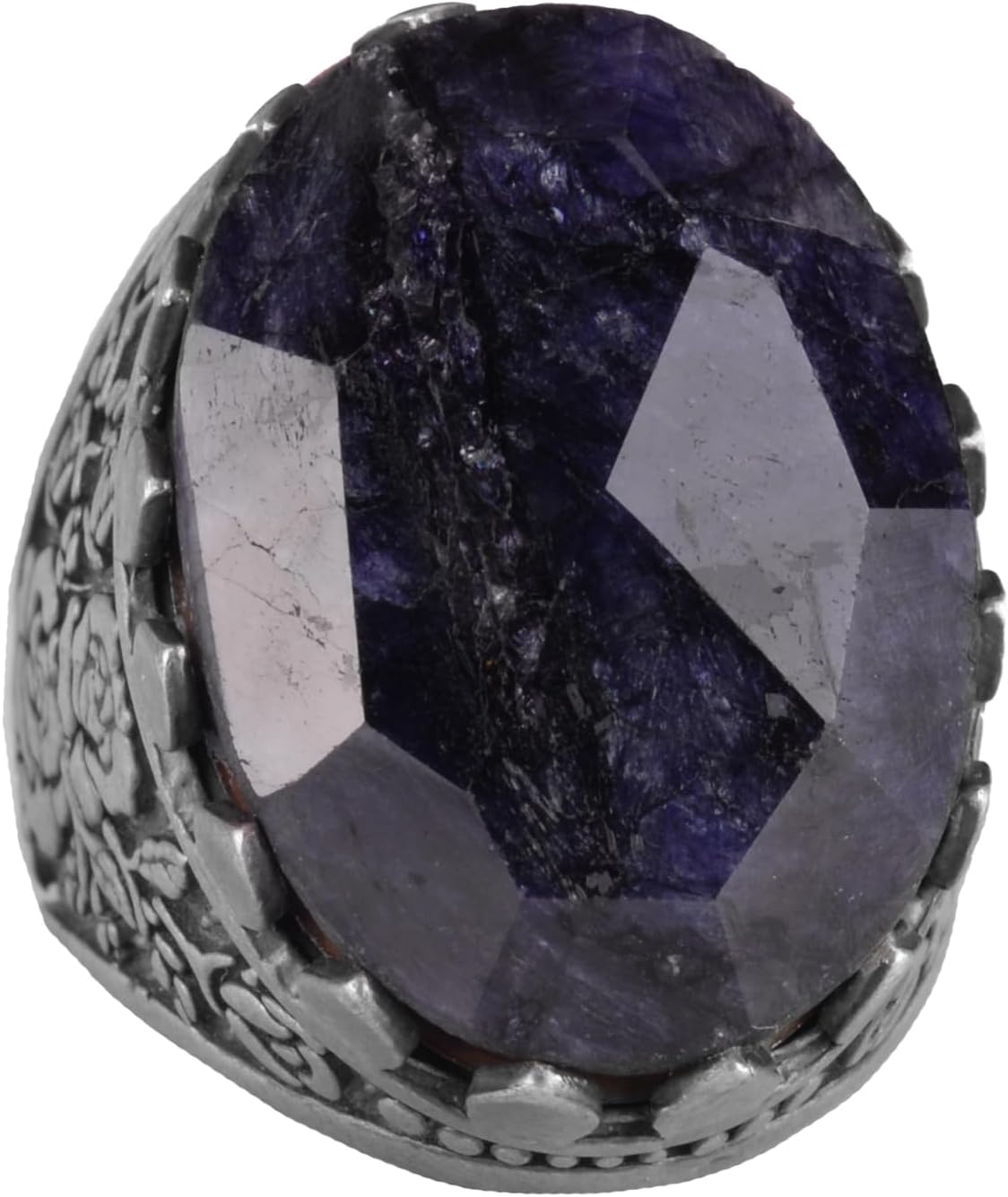 925 Ayar Gümüş Yüzük - Gül Desenli Yüzük - Yapay Taş Yüzük Erkekler İçin - El Yapımı Yüzük (Yapay sultanit)