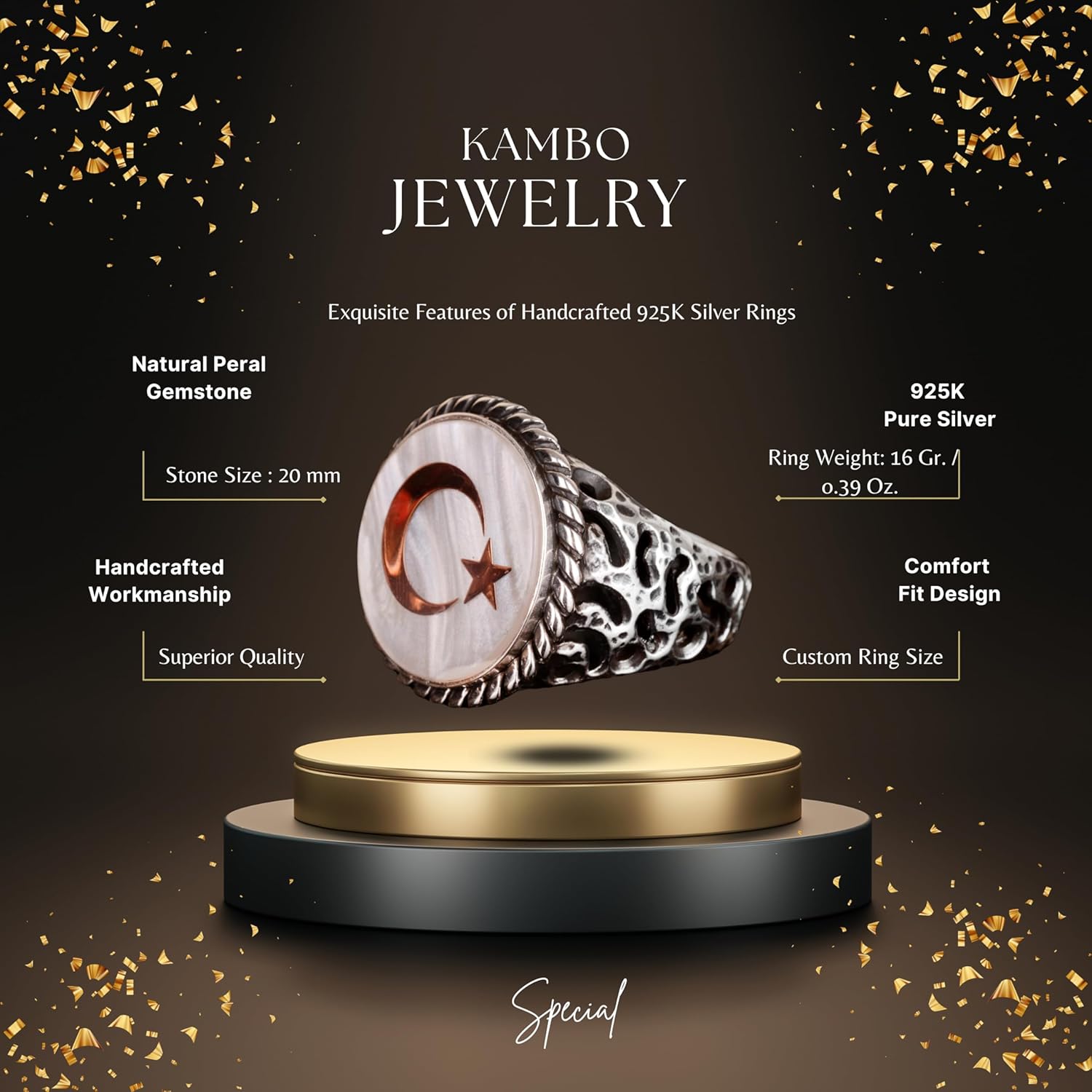 925 Ayar Gümüş Yüzük - İmza Yüzüğü - Semboller Yüzüğü (Yıldız ve Hilal)