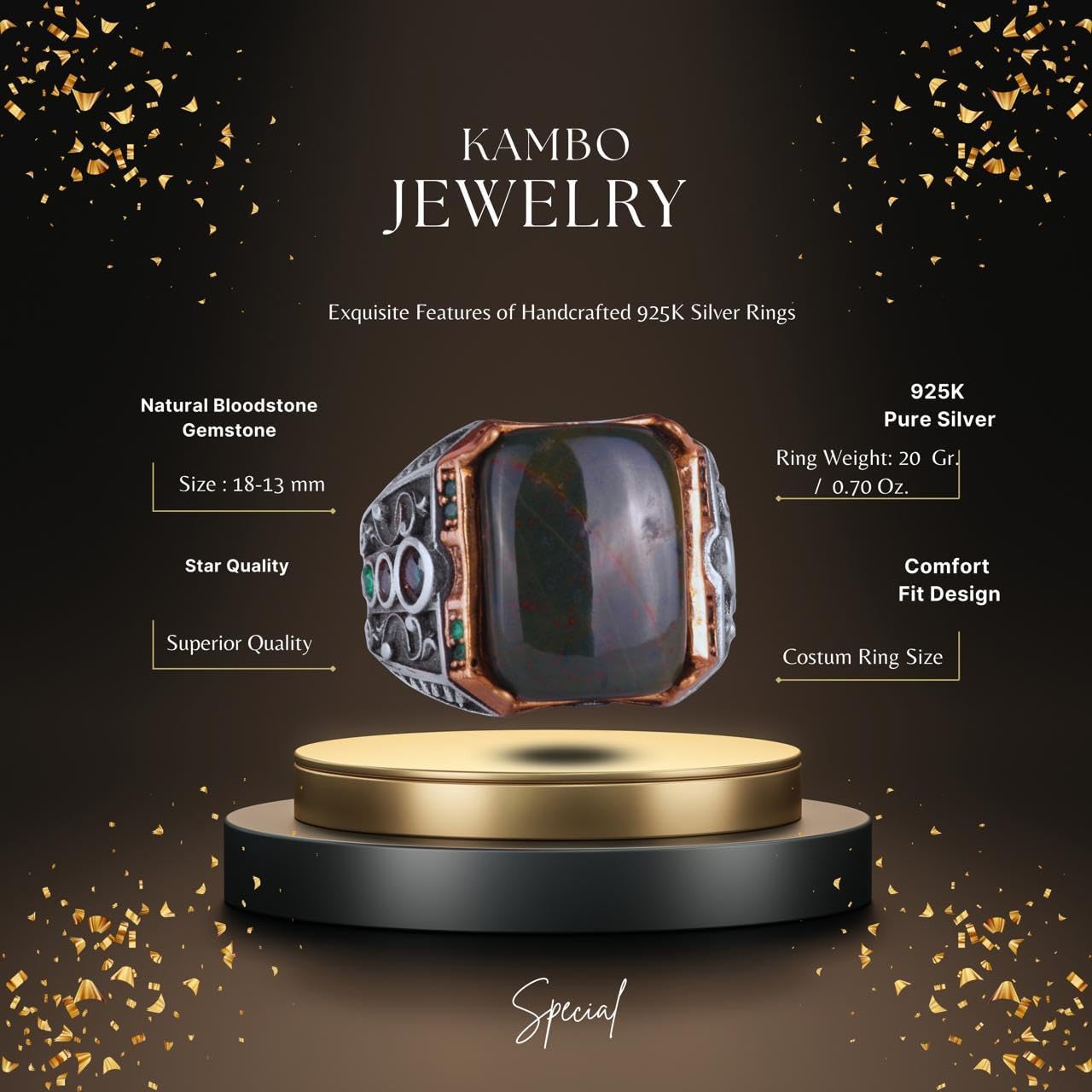 925 Ayar Gümüş Yüzük - Gerçek Doğal Taş Yüzük - El Yapımı Yüzük (Kan Taşı)