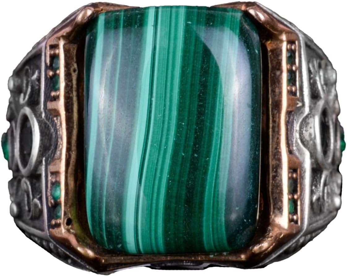 925 Ayar Gümüş Yüzük - Gerçek Doğal Taş Yüzük - El Yapımı Yüzük (Malakit)