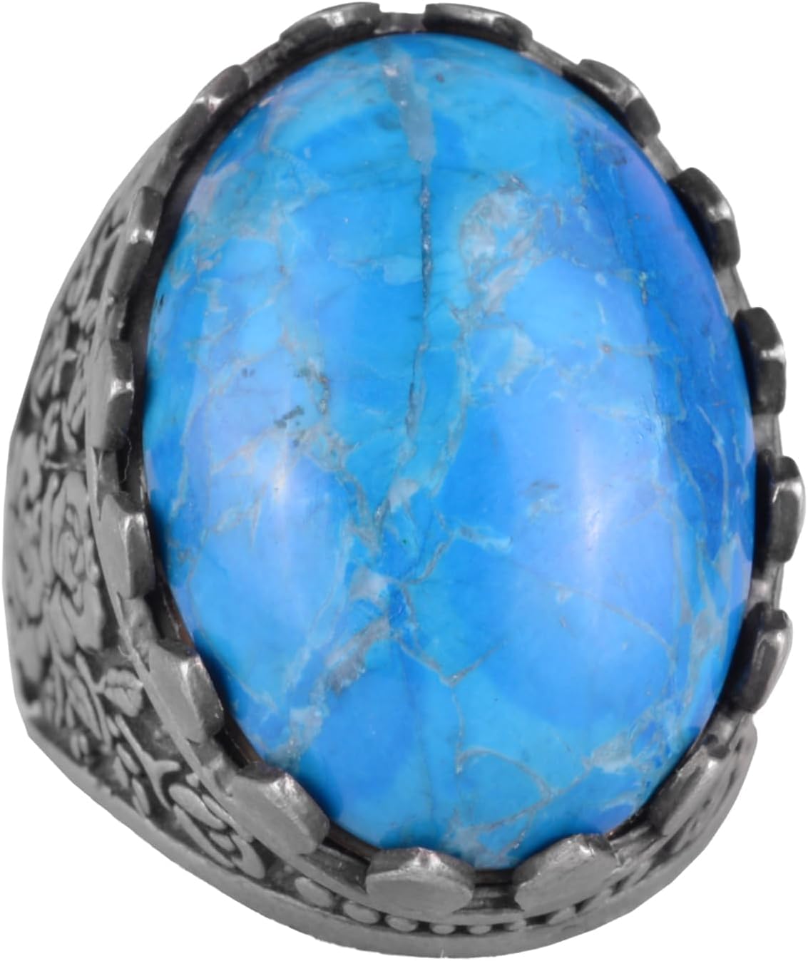925 Ayar Gümüş Yüzük - Gül Desenli Yüzük - Erkekler için Oluşturulmuş Taş Yüzük (Oluşturulmuş Turkuaz)