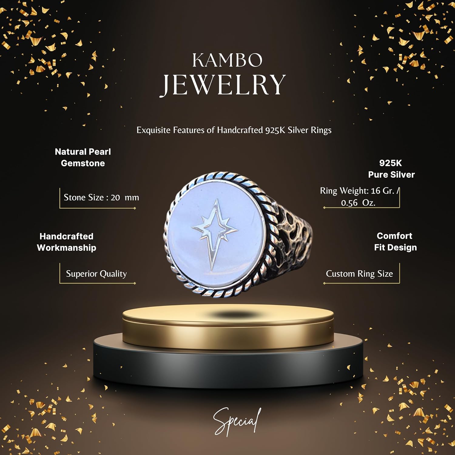 925 Ayar Gümüş Yüzük - Kral Yüzüğü - Doğal Olmayan Taş Yüzük - El Yapımı Yüzük Erkekler için (Oluşturulmuş oniks)