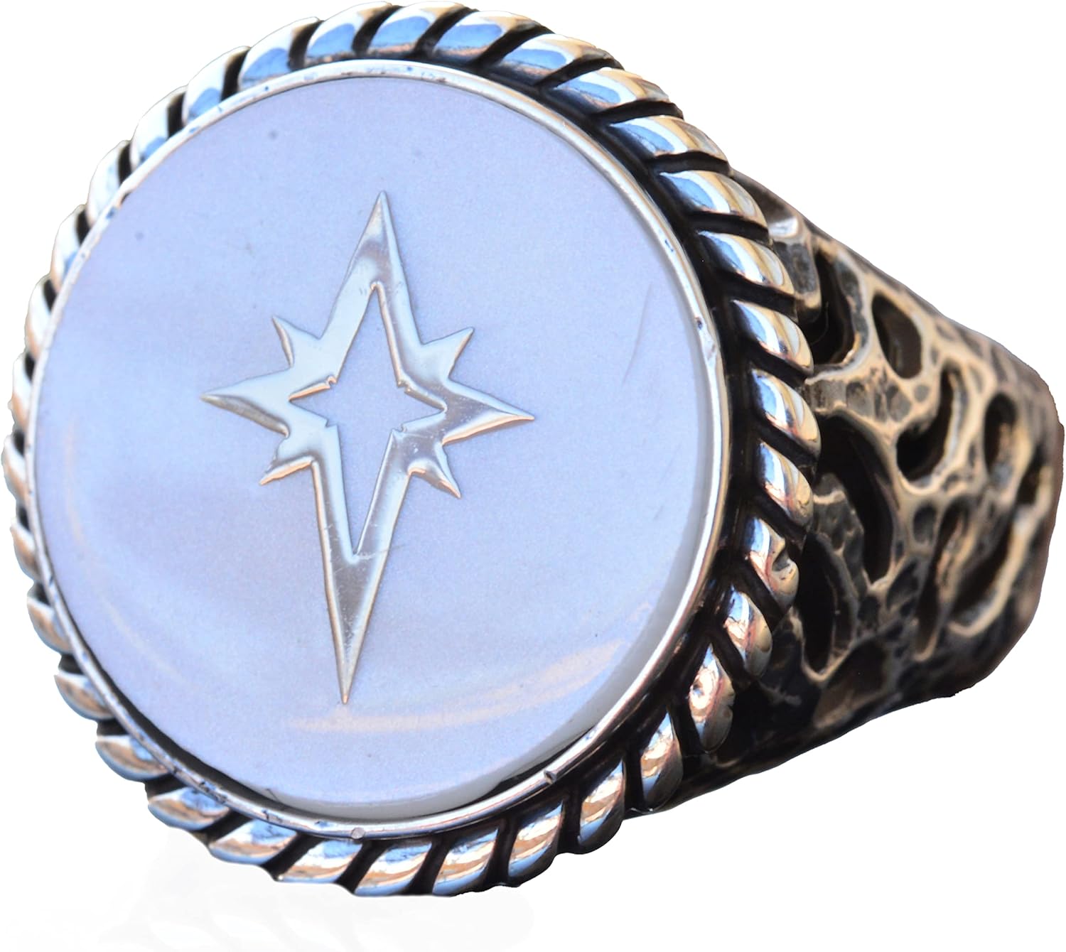 925 Ayar Gümüş Yüzük - İmza Erkek Yüzüğü - Semboller Yüzüğü (Kuzey Yıldızı)
