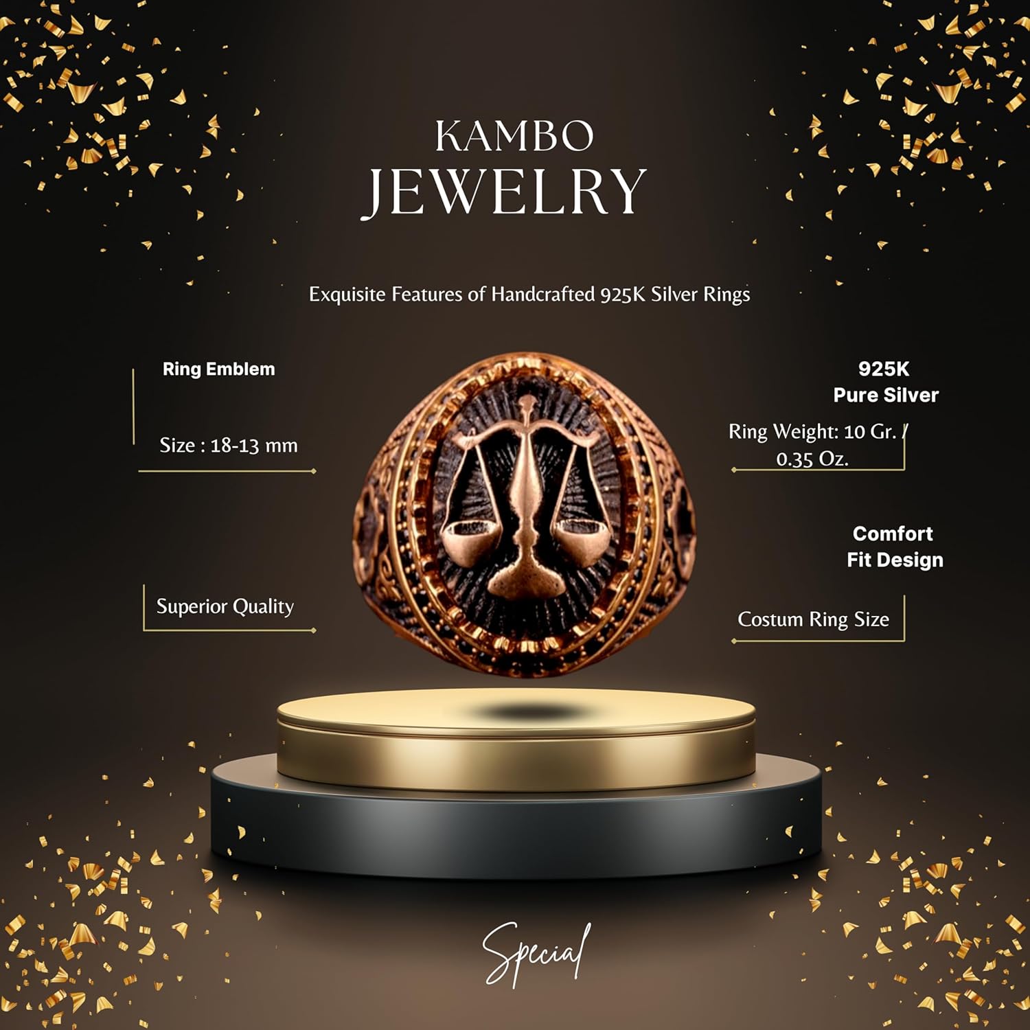 925 Ayar Gümüş Yüzük , Altın Kaplama- Sembol Yüzükler - Erkek Yüzükleri (Terazi)
