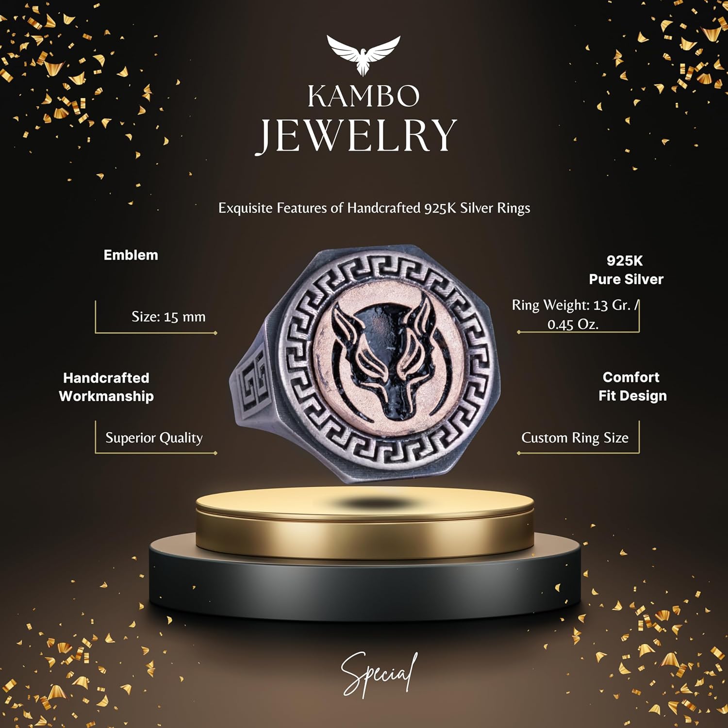 925 Ayar Gümüş Yüzük - Yunan Anahtarı Tasarımı Erkek Yüzüğü - El Yapımı Yüzük (Kurt)