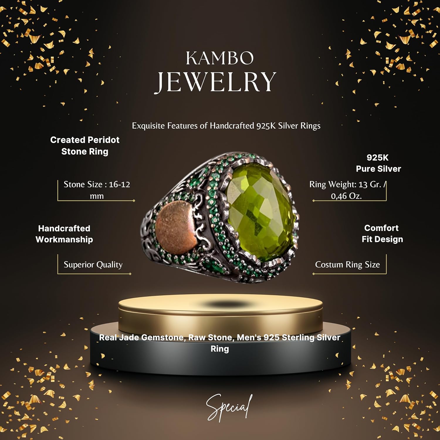 925 Ayar Gümüş Yüzük ile Oluşturulmuş Yapay Peridot Taşı - Şık Erkek Yüzüğü