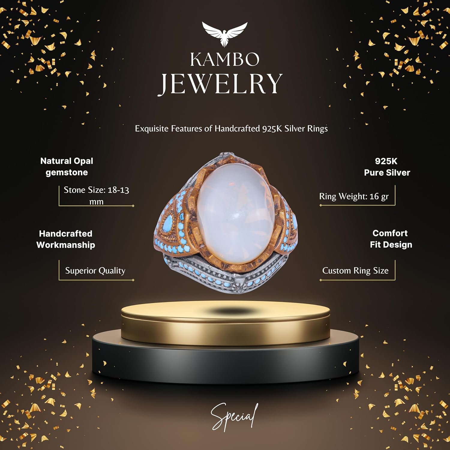 925 Ayar Gümüş Yüzük ile Gerçek Oval Opal Taşı - Dikkat Çekici Takı Parçası