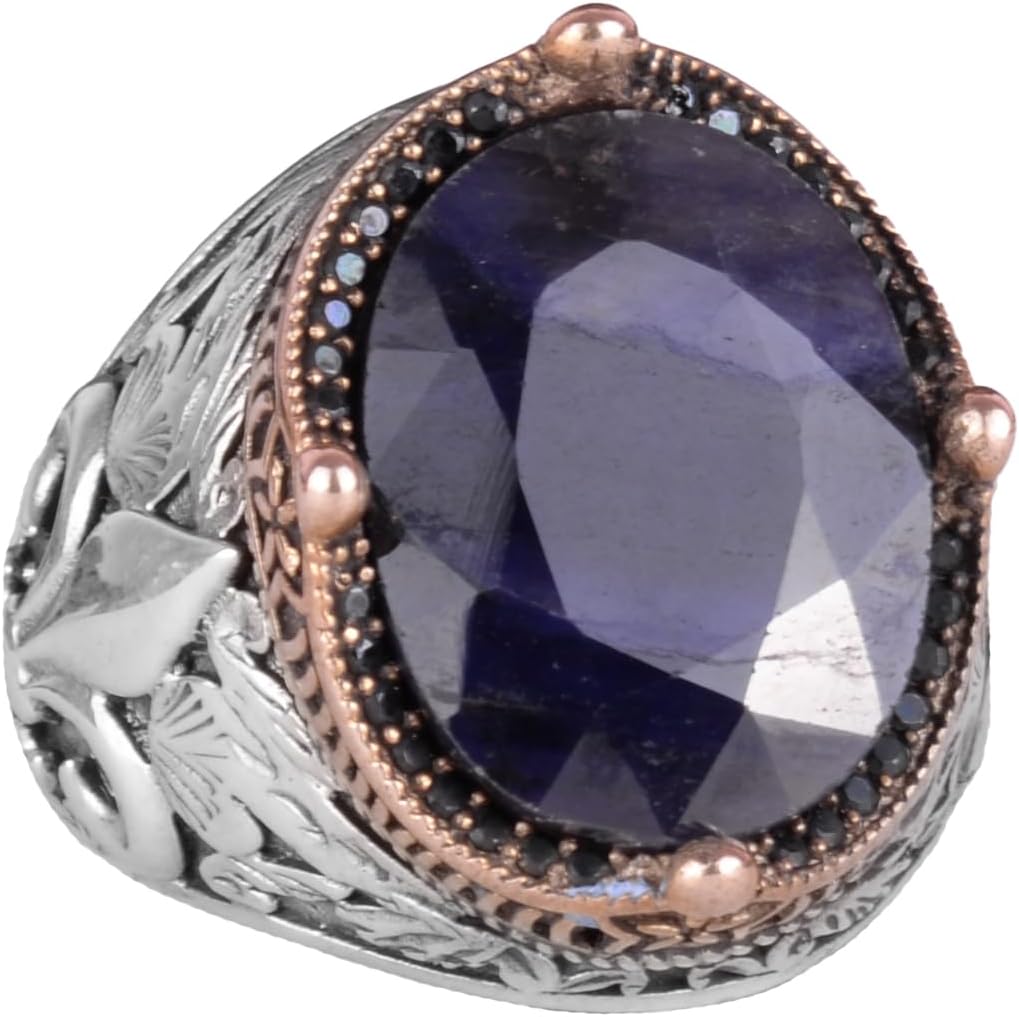 925 Ayar Gümüş El Yapımı Erkek Yüzük - Çeşitli Doğal Taşlarla Mevcuttur (Mavi Safir)