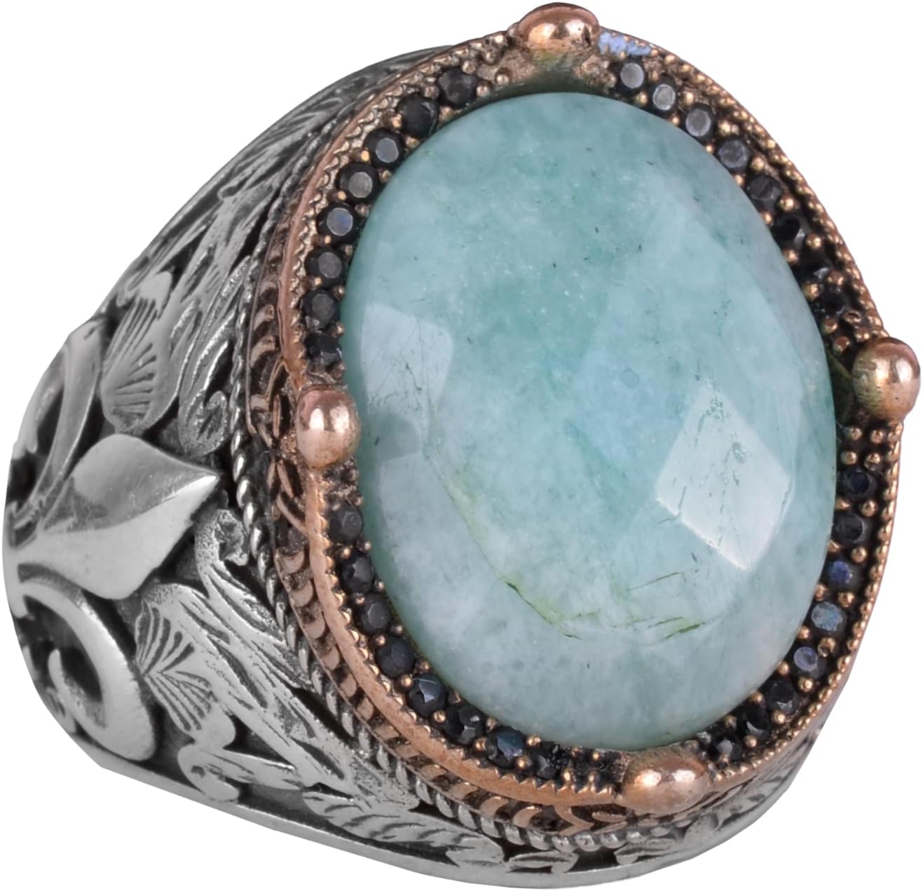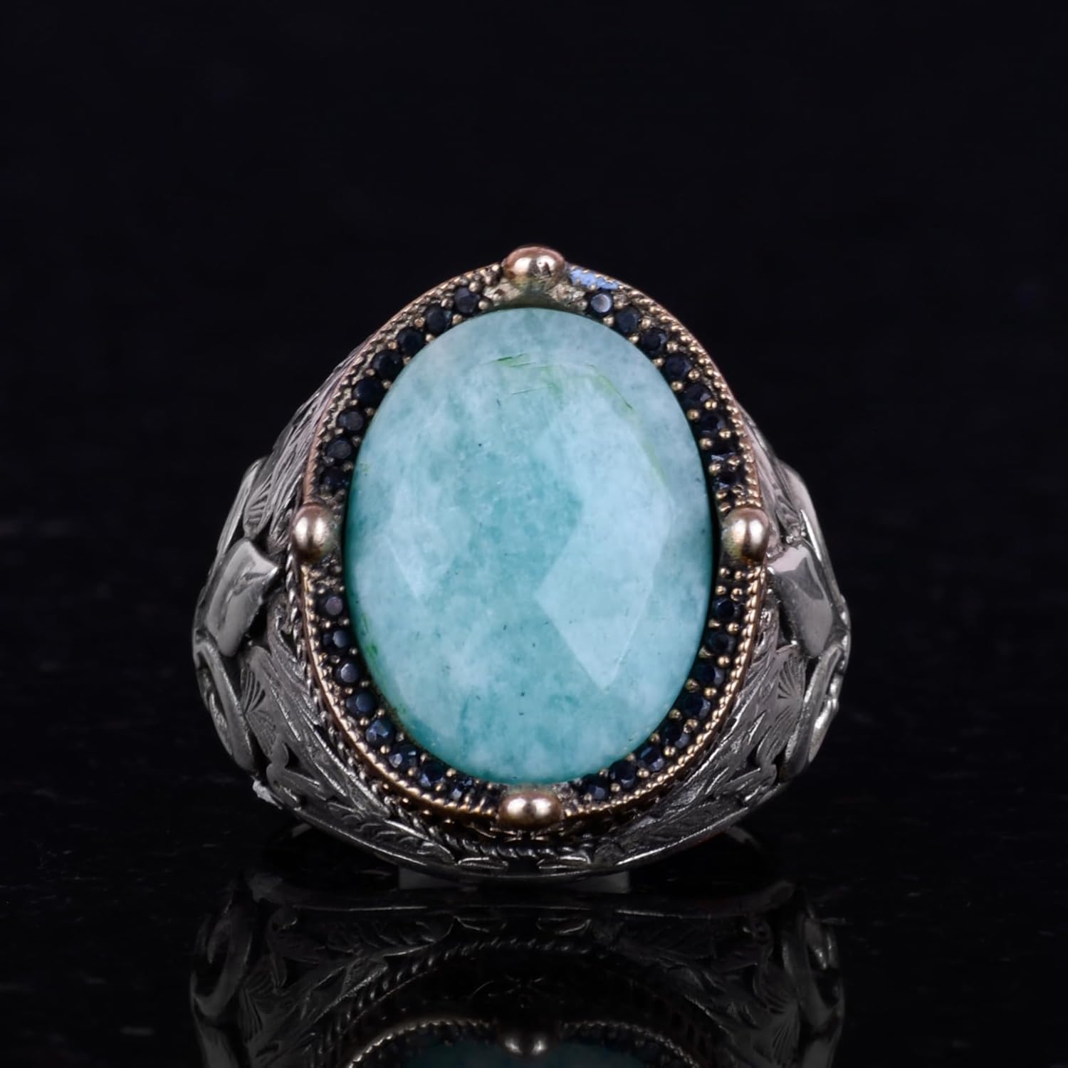 925 Ayar Gümüş El Yapımı Erkek Yüzük - Çeşitli Doğal Taşlarla Mevcuttur (Amazonit)