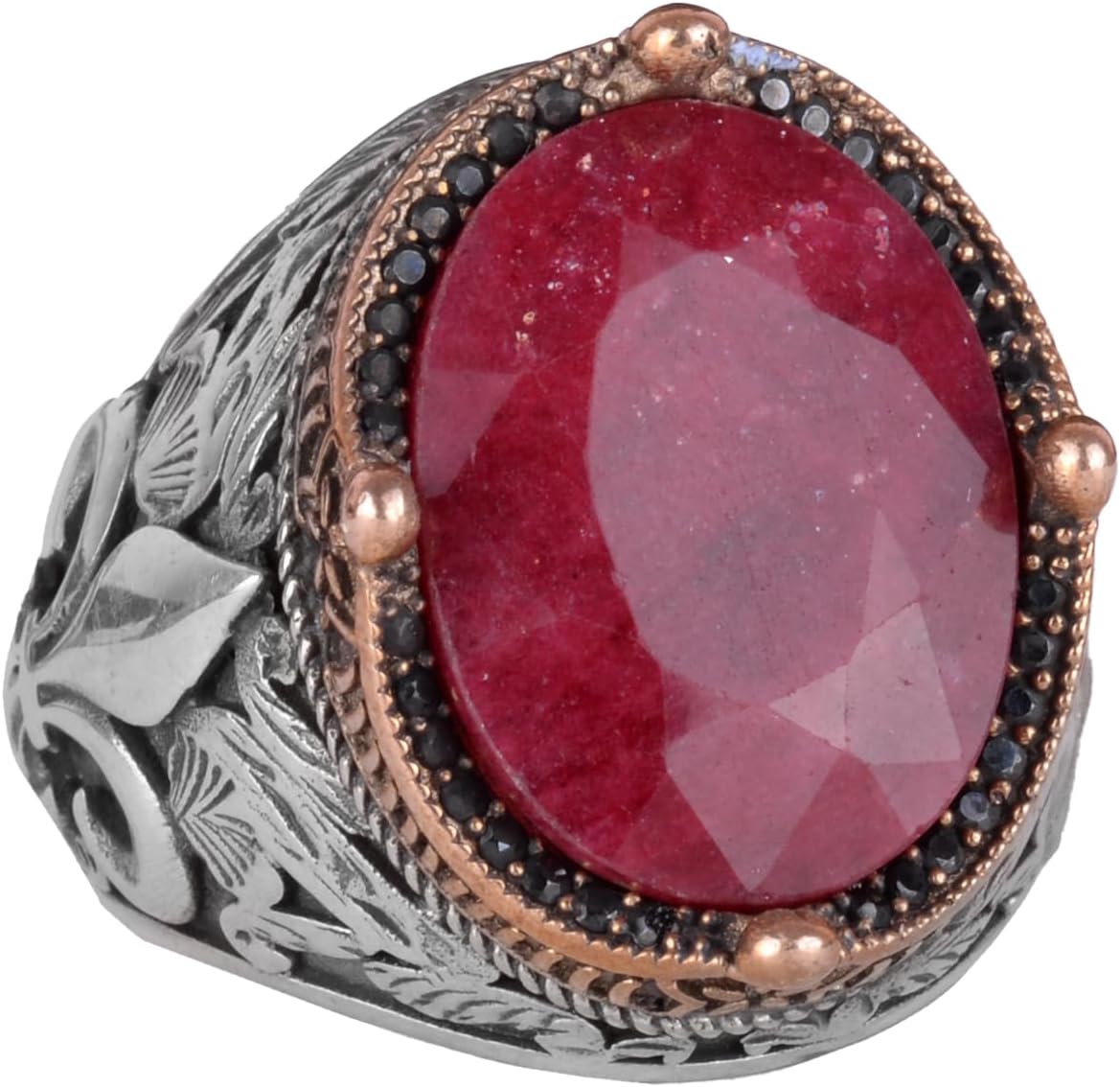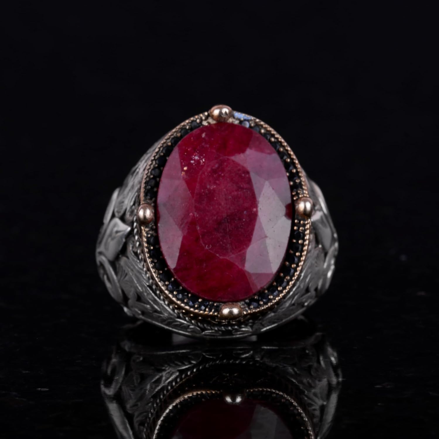 925 Ayar Gümüş El Yapımı Erkek Yüzük - Çeşitli Doğal Yakut Taşlı
