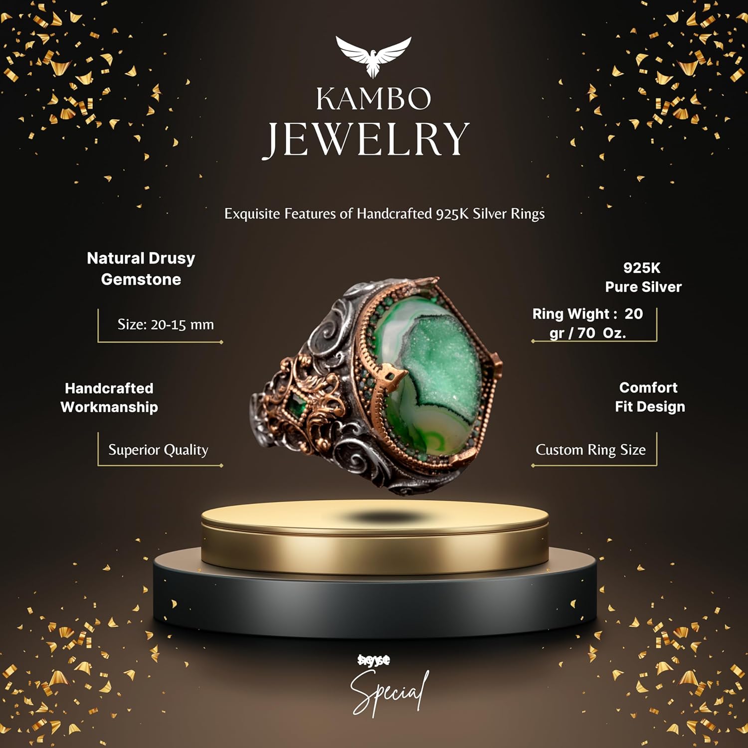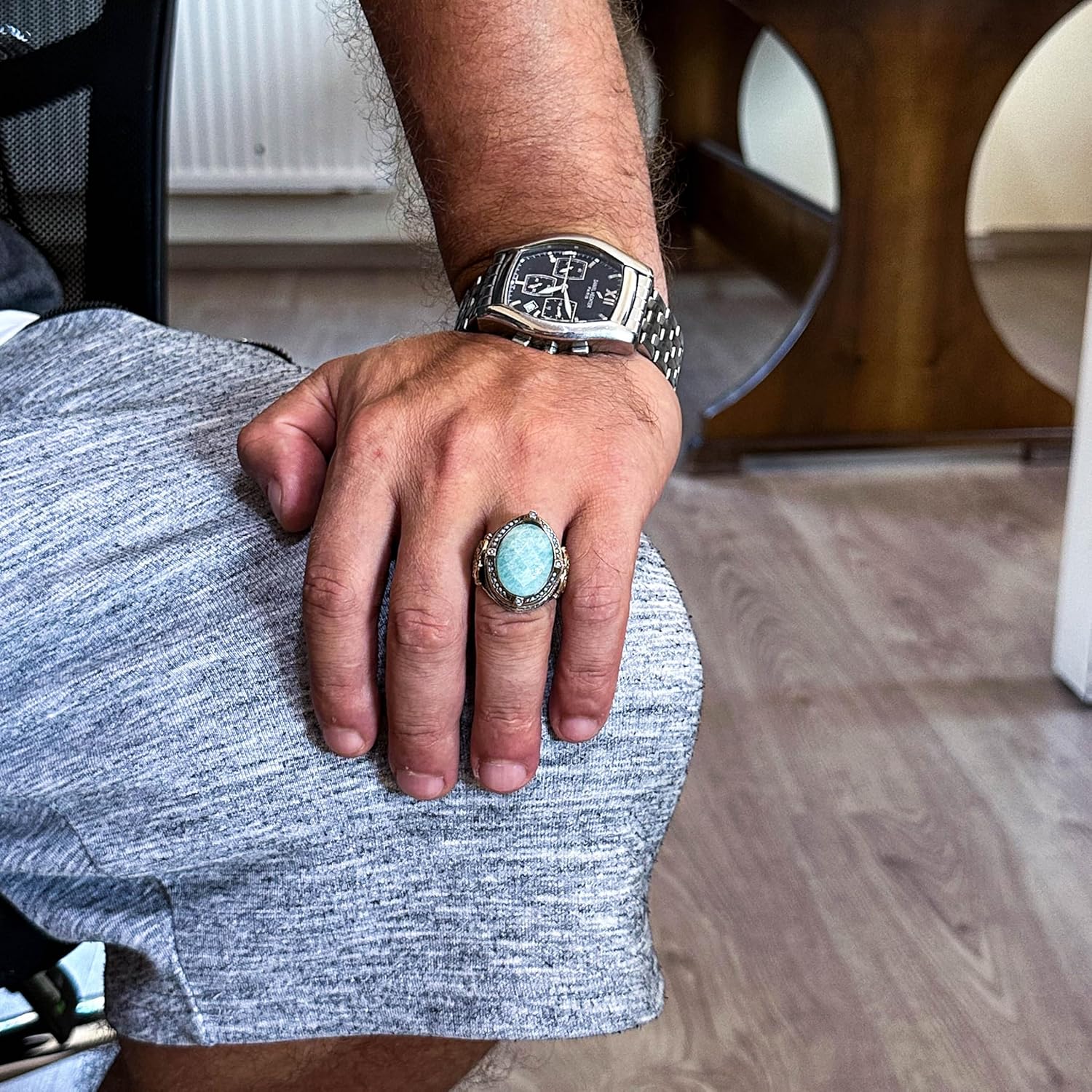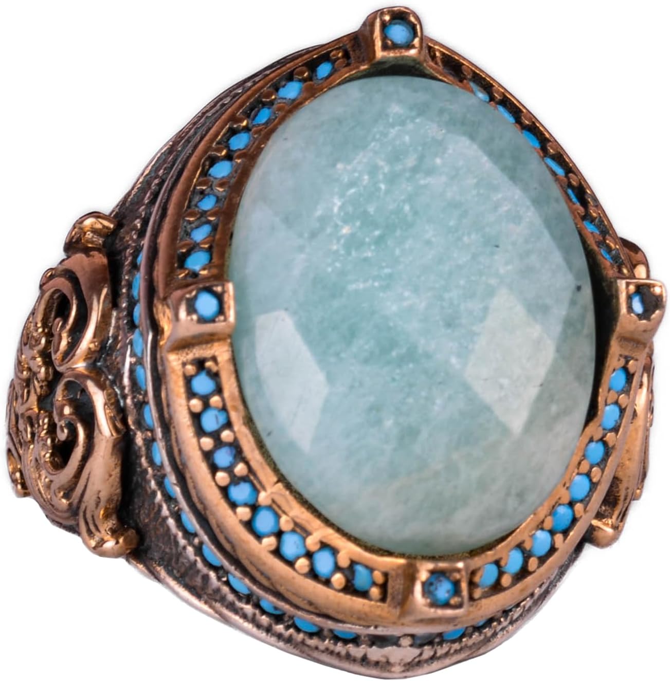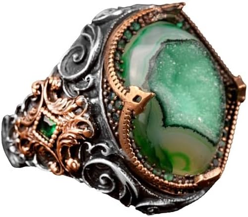 925 Ayar Gümüş Yüzük, Gerçek Doğal Taş Erkek Yüzüğü, El Yapımı Vintage Tasarım (Amazonit)