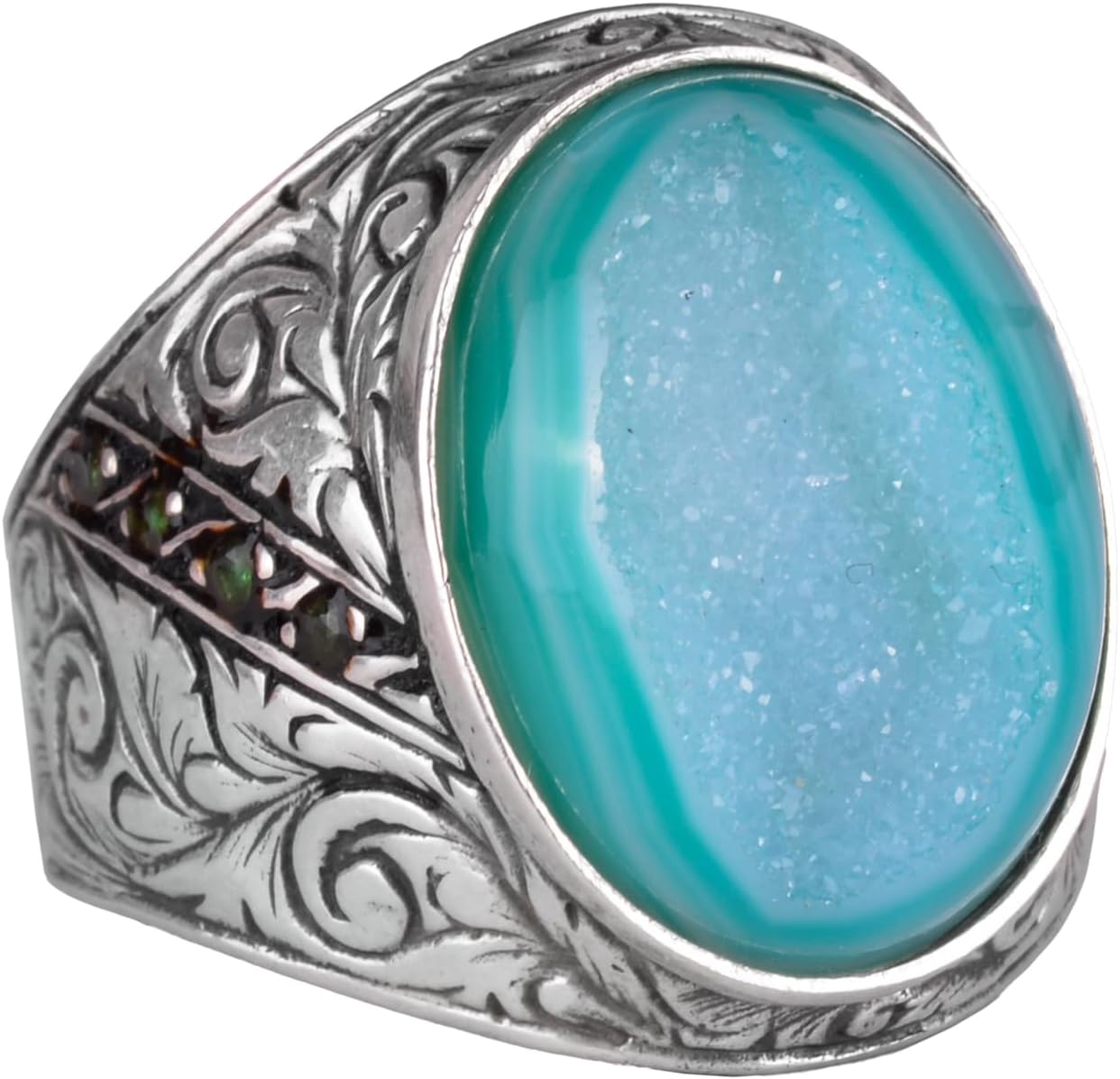 925 Ayar Gümüş Yüzük, Gerçek Doğal Druzy Kuvars Taşı Yüzük, Büyük Yüzük