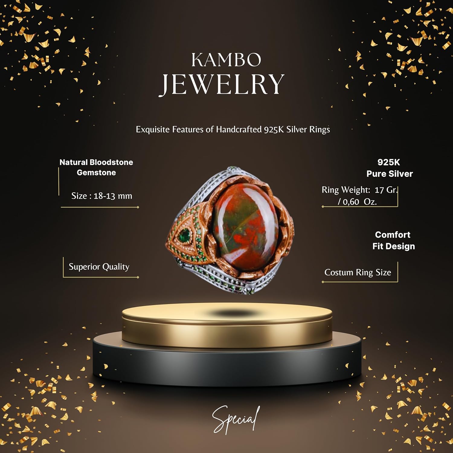 925 Ayar Gümüş Yüzük, Gerçek Doğal Kan Taşı El Yapımı Yüzük, Katı Gümüş Erkek Yüzük
