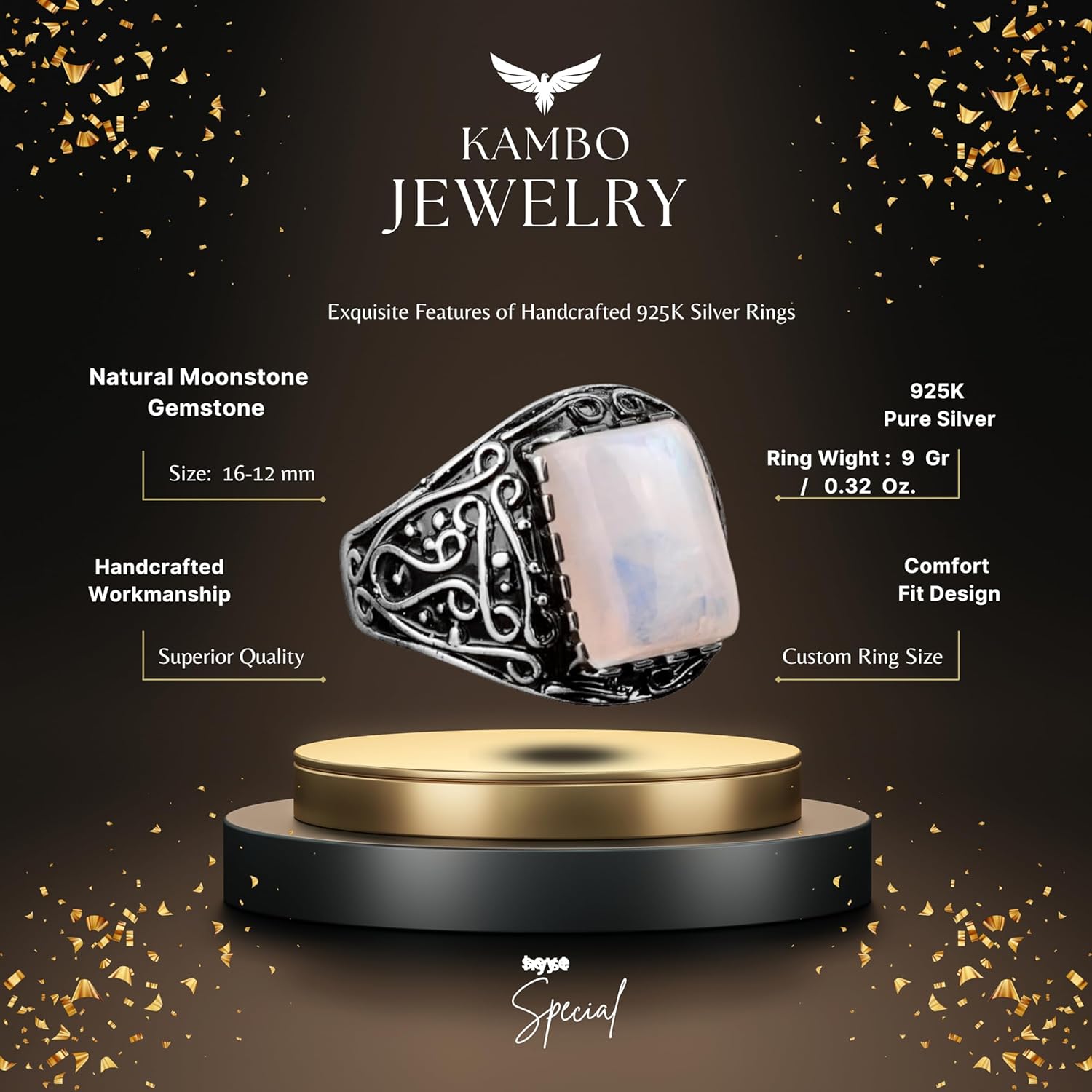 925 Ayar Gümüş Yüzük, Gerçek Doğal Aytaşı Taşlı Yüzük Erkekler İçin