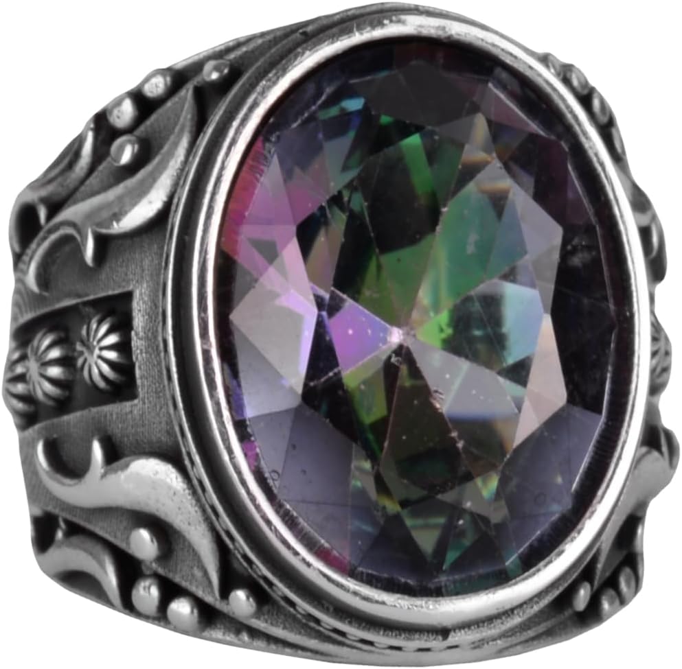 925 Ayar Gümüş Yüzük, Tasarım Gümüş Erkek Yüzüğü (Mistik Topaz Taşı)
