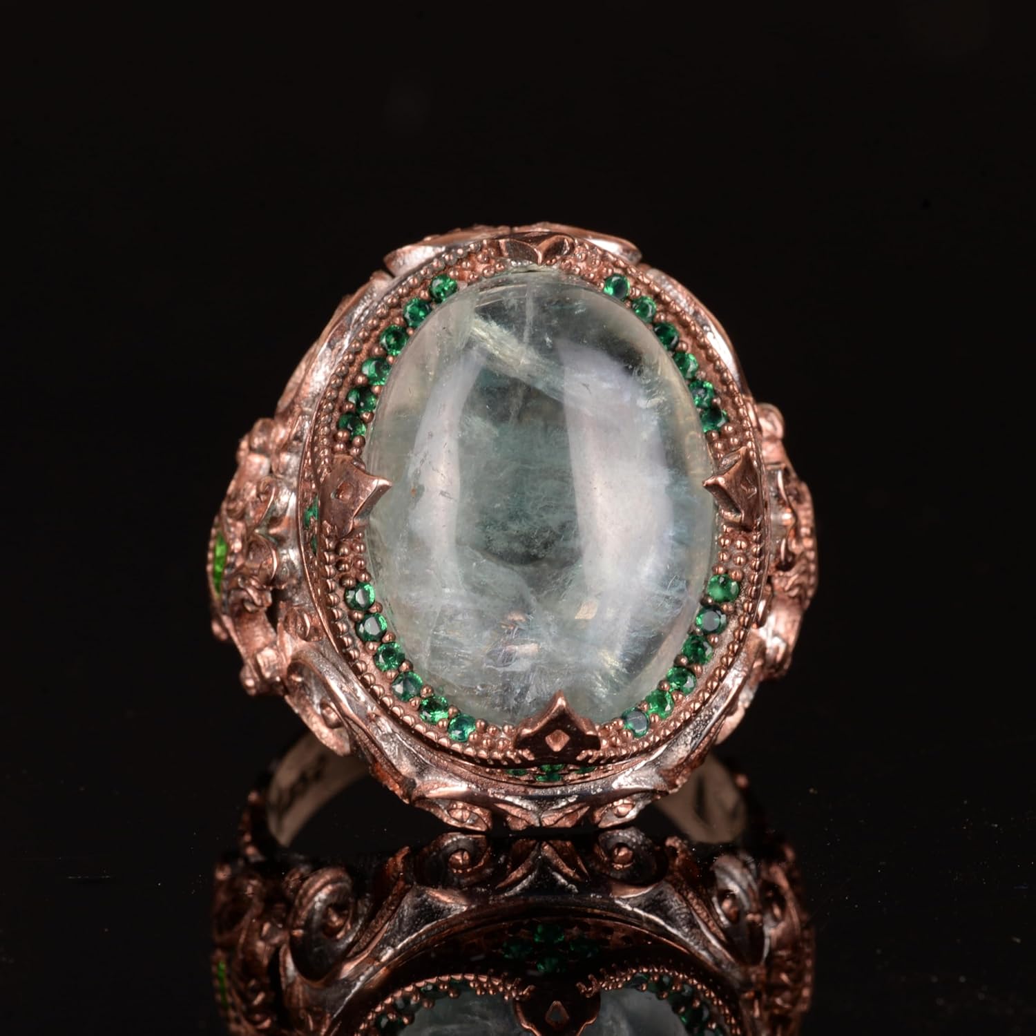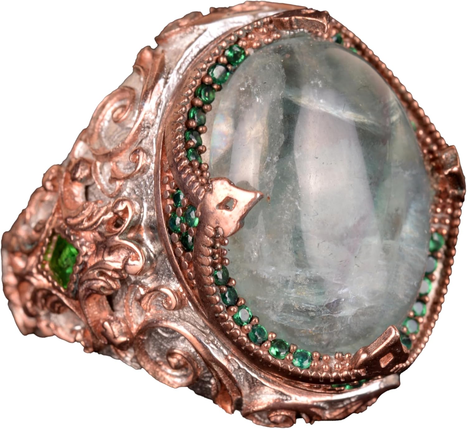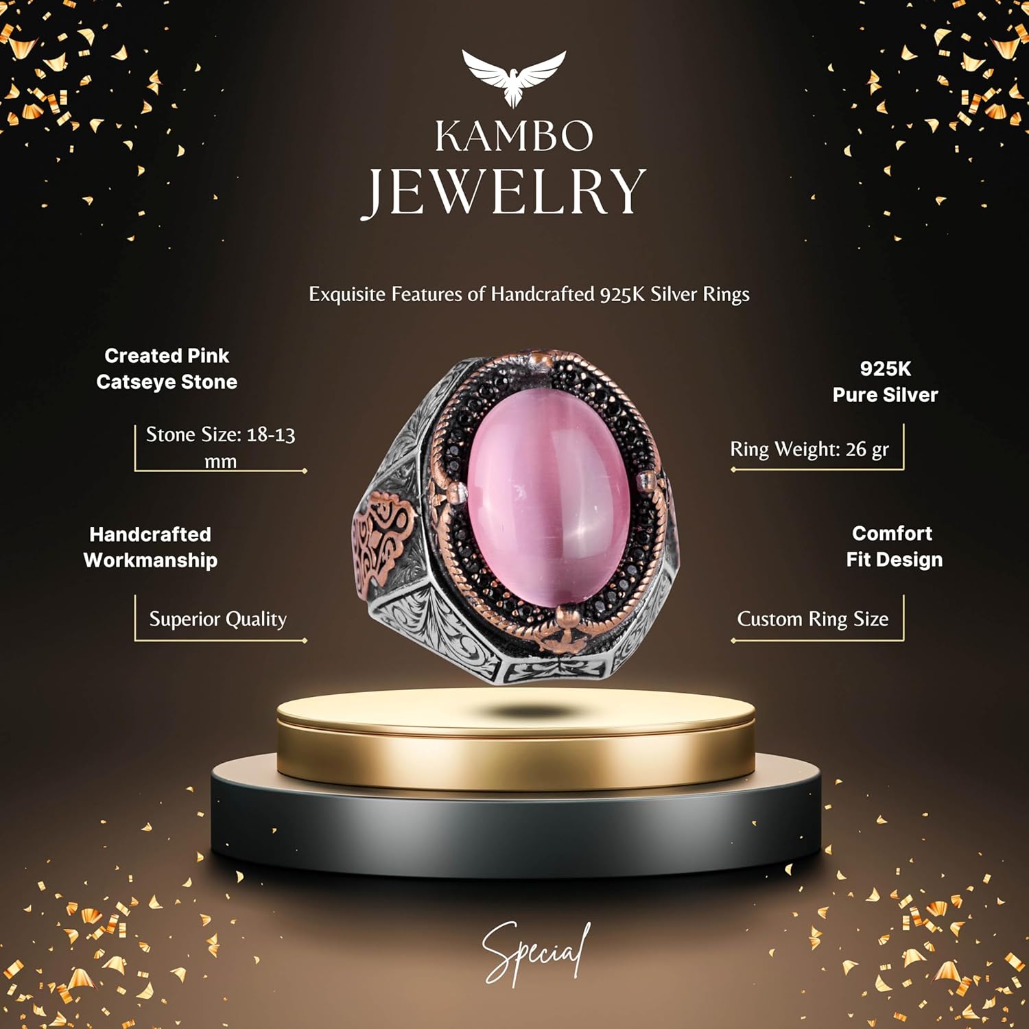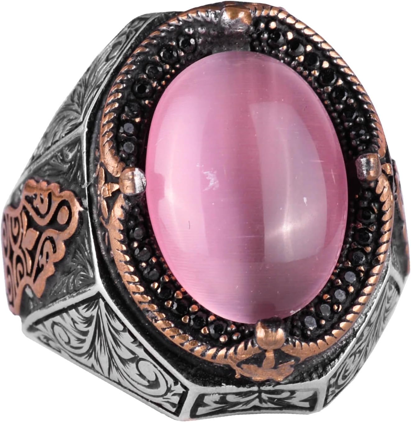 925 Ayar Gümüş Yüzük, Pembe Kedi Gözü Oluşturulmuş Taş Yüzük, Tasarım Gümüş Erkek Yüzüğü