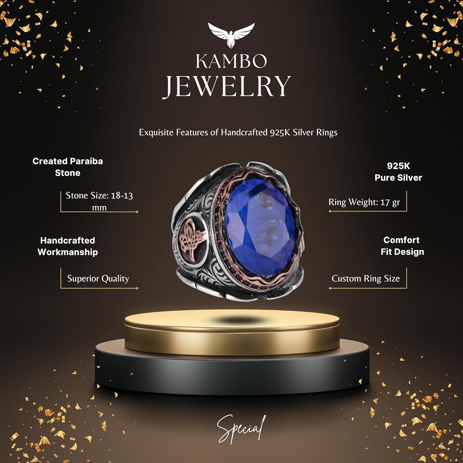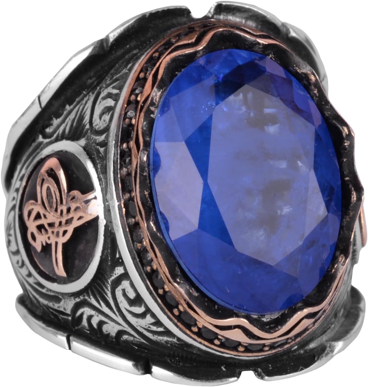 925 Ayar Gümüş Yüzük, Osmanlı Gümüş Yüzük, Lacivert Paraiba Yapay Taş Yüzük