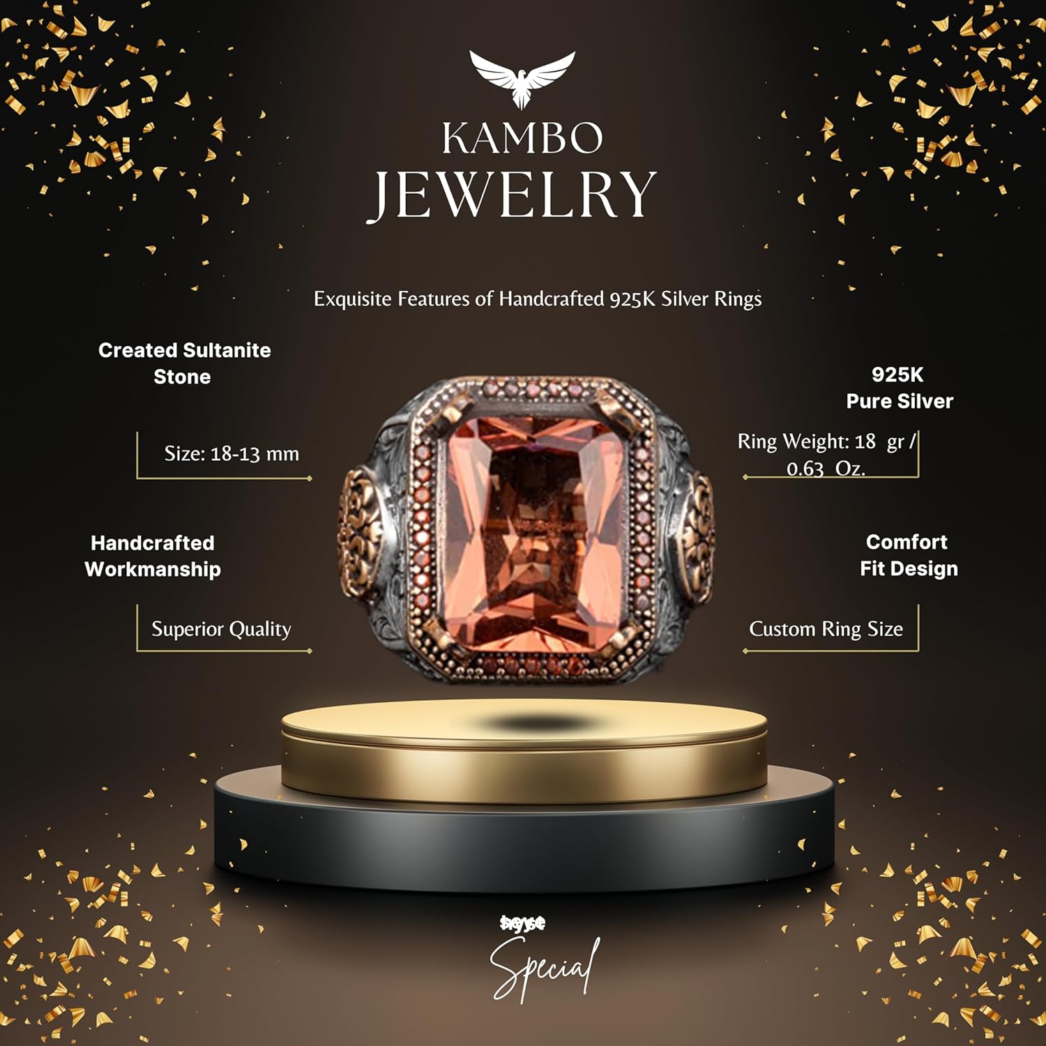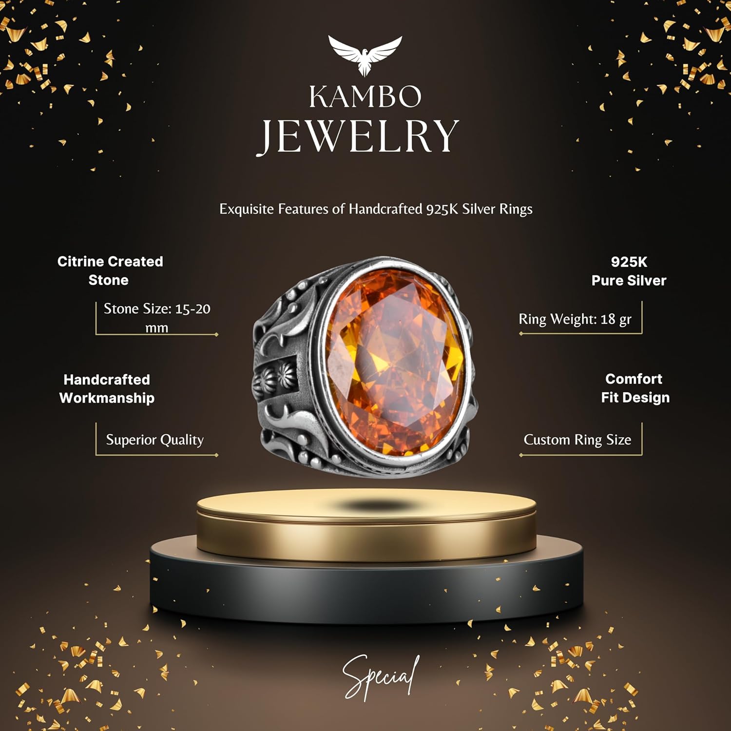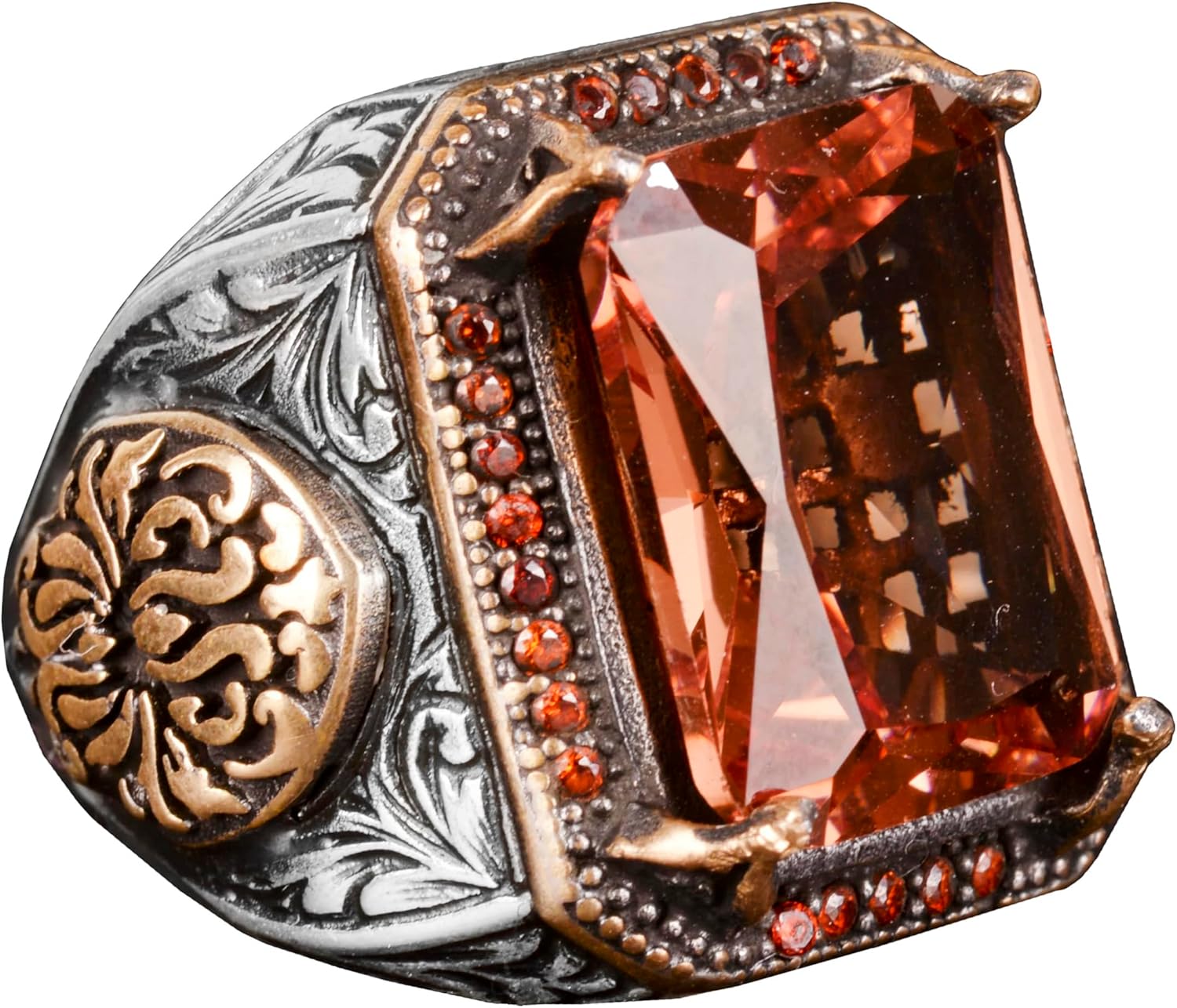 925 Ayar Gümüş Yüzük, Tasarım Gümüş Erkek Yüzüğü (Turuncu Yapay Sitrin Taşı)