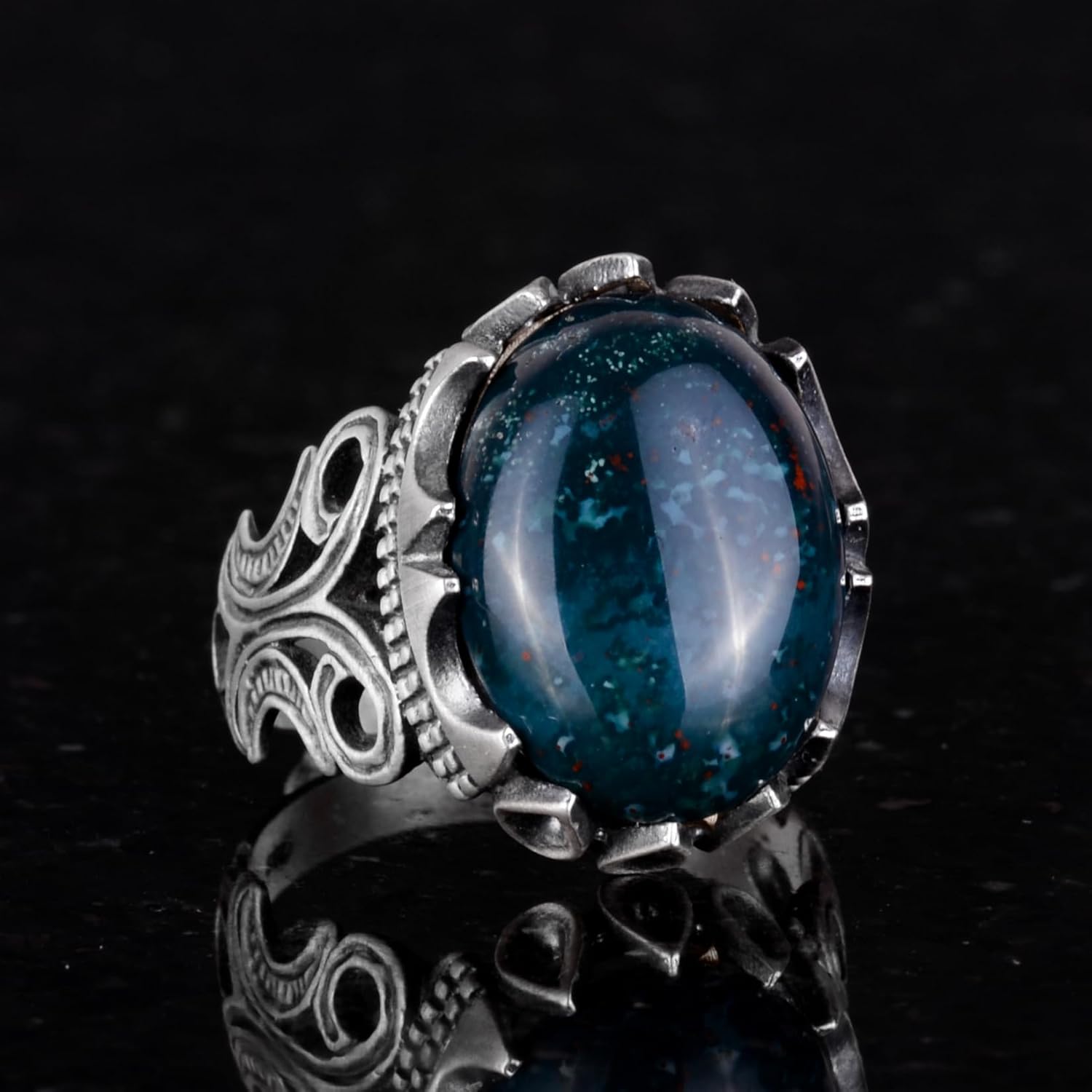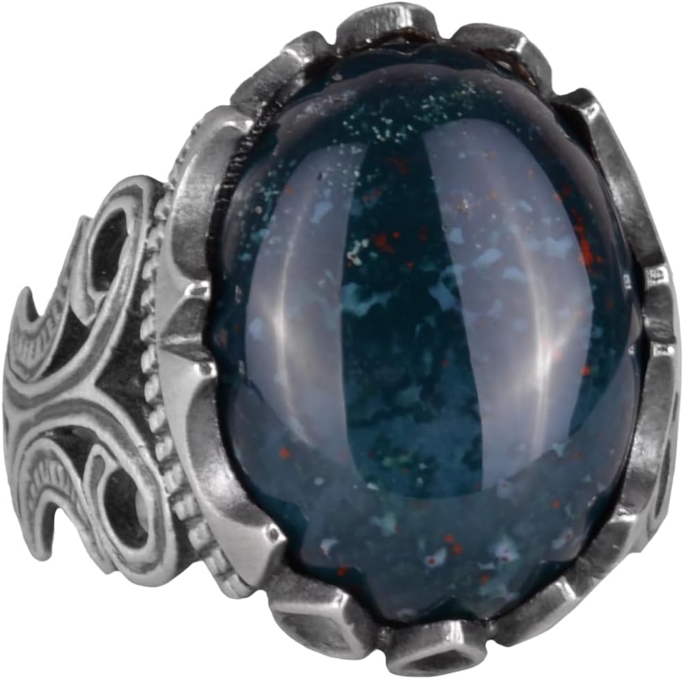 925 Ayar Katı Gümüş Erkek Yüzük - Doğal Taş Seçeneği ile El Yapımı Tasarım (Yeşil Kan Taşı)