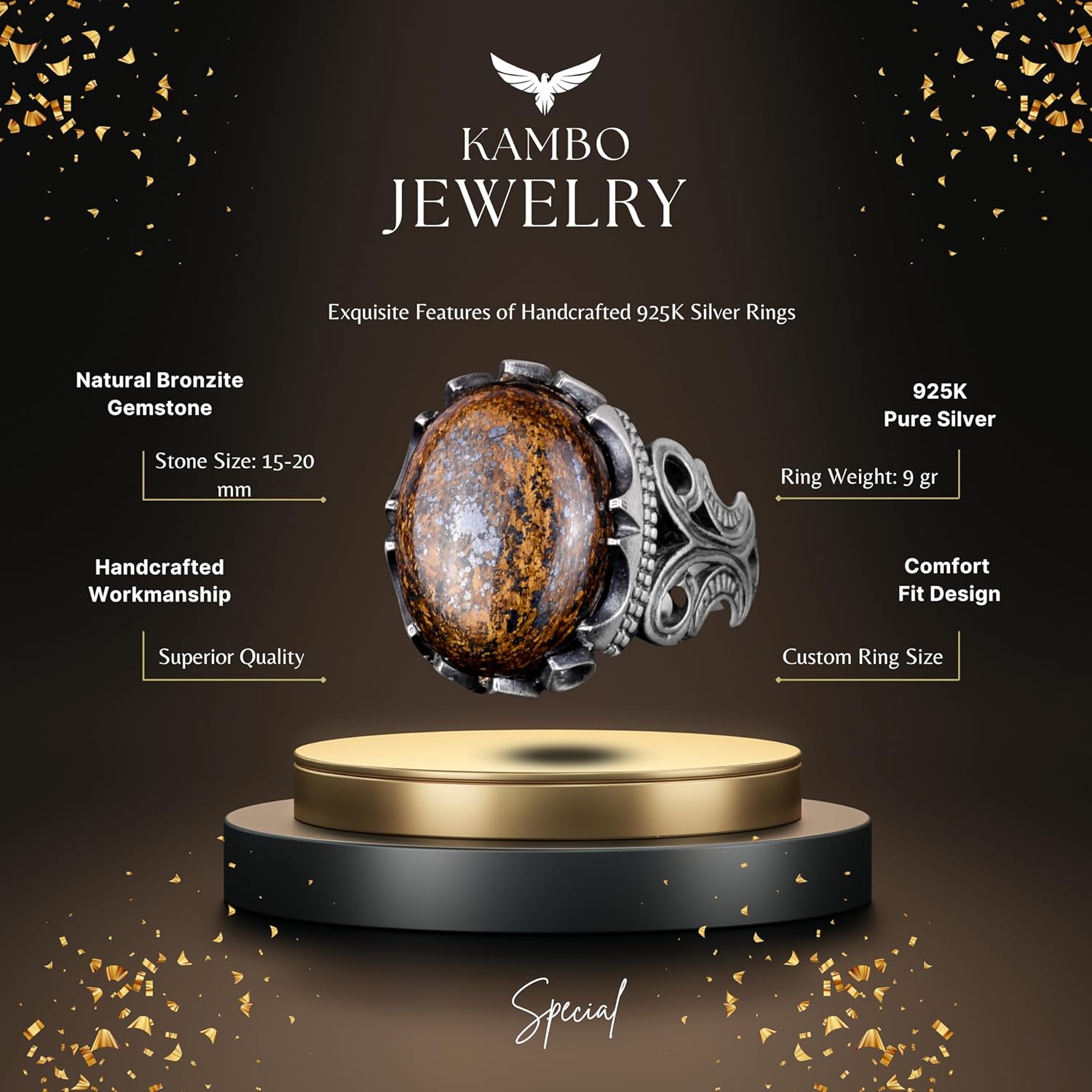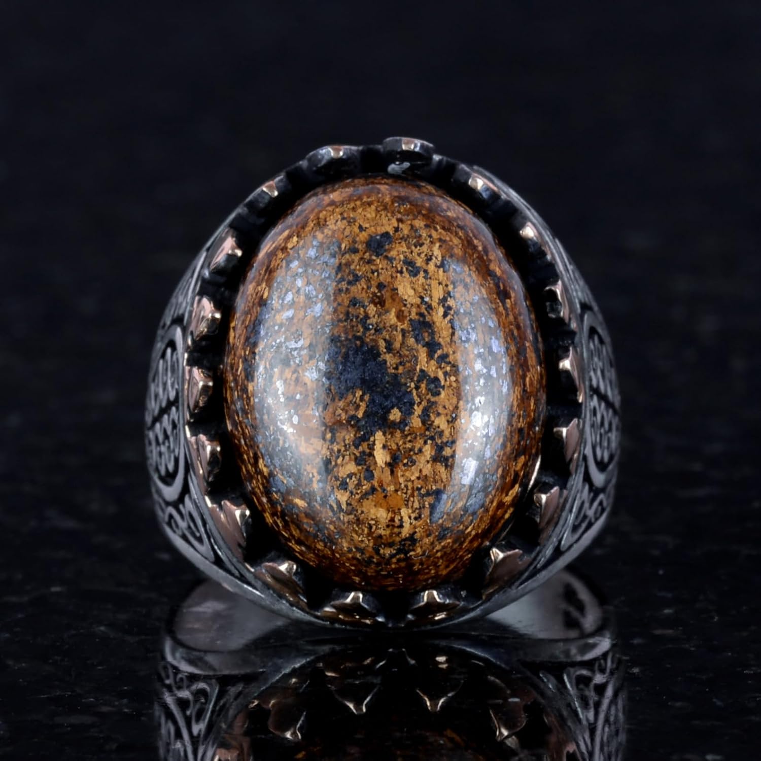 925 Ayar Katı Gümüş Erkek Yüzük - Doğal Taşlarla El Yapımı Şıklık (Bronzit Taşı)
