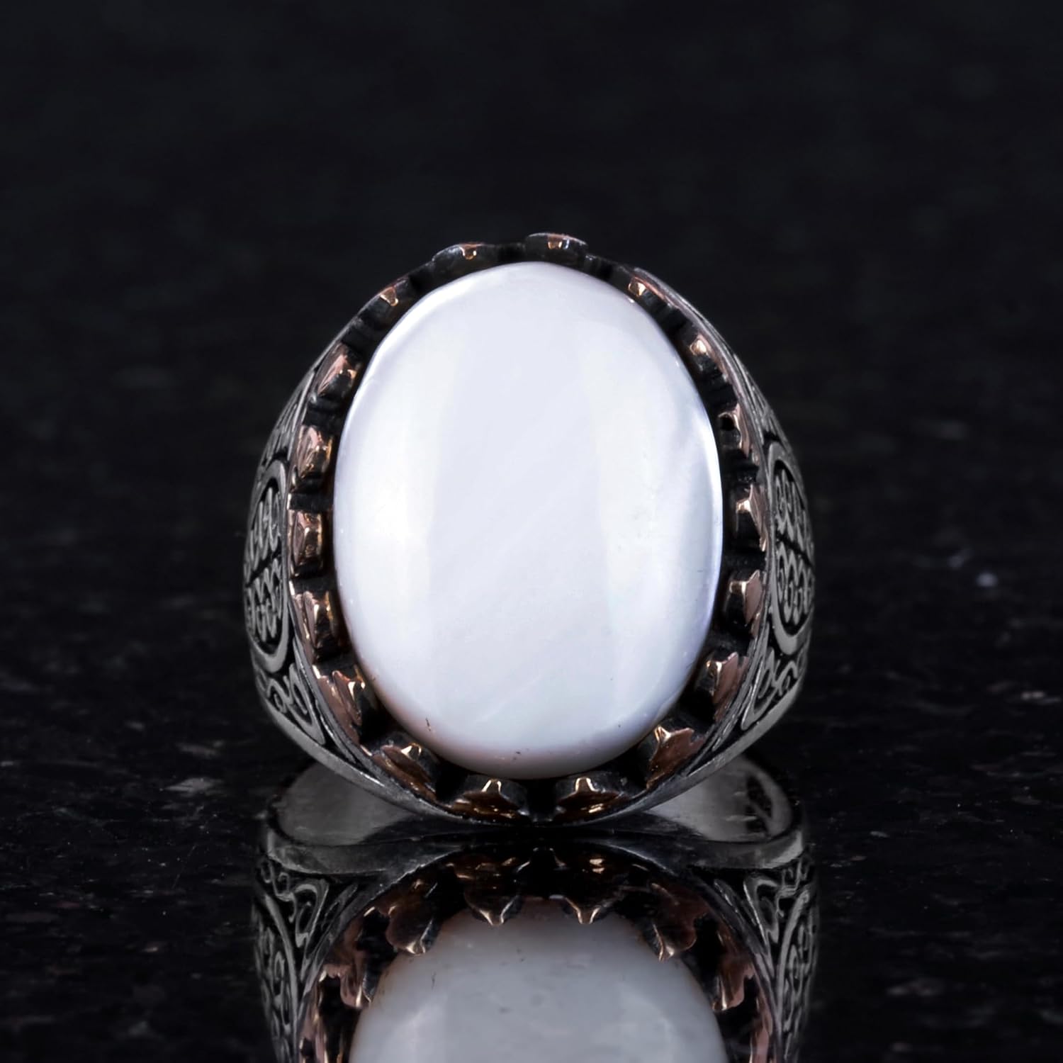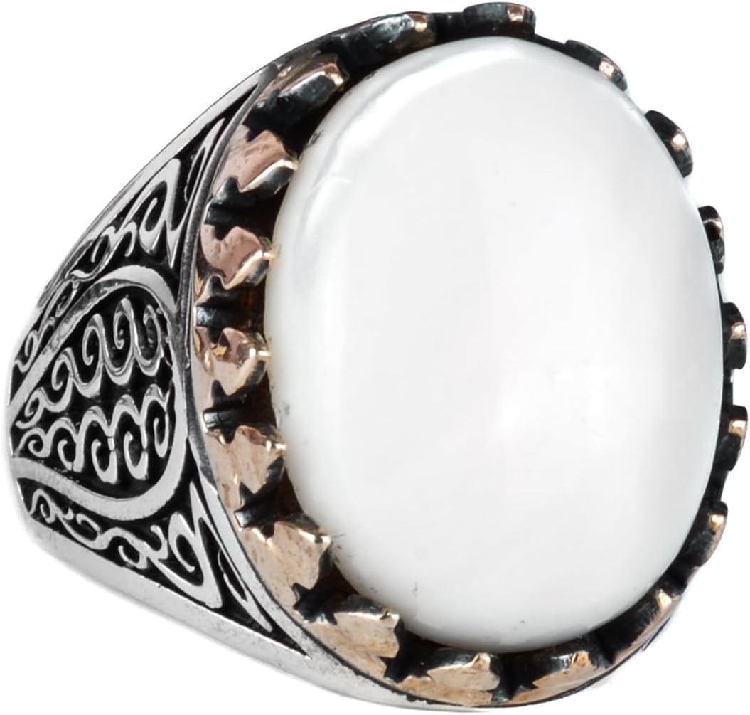 925 Ayar Katı Gümüş Erkek Yüzük - Doğal Taşlarla El Yapımı Şıklık (İnci Taşı)