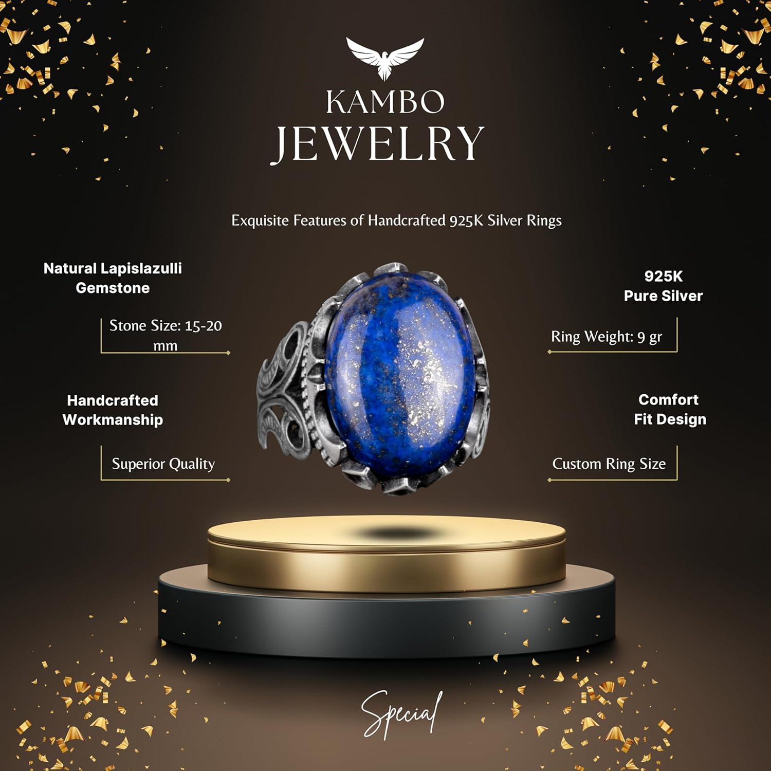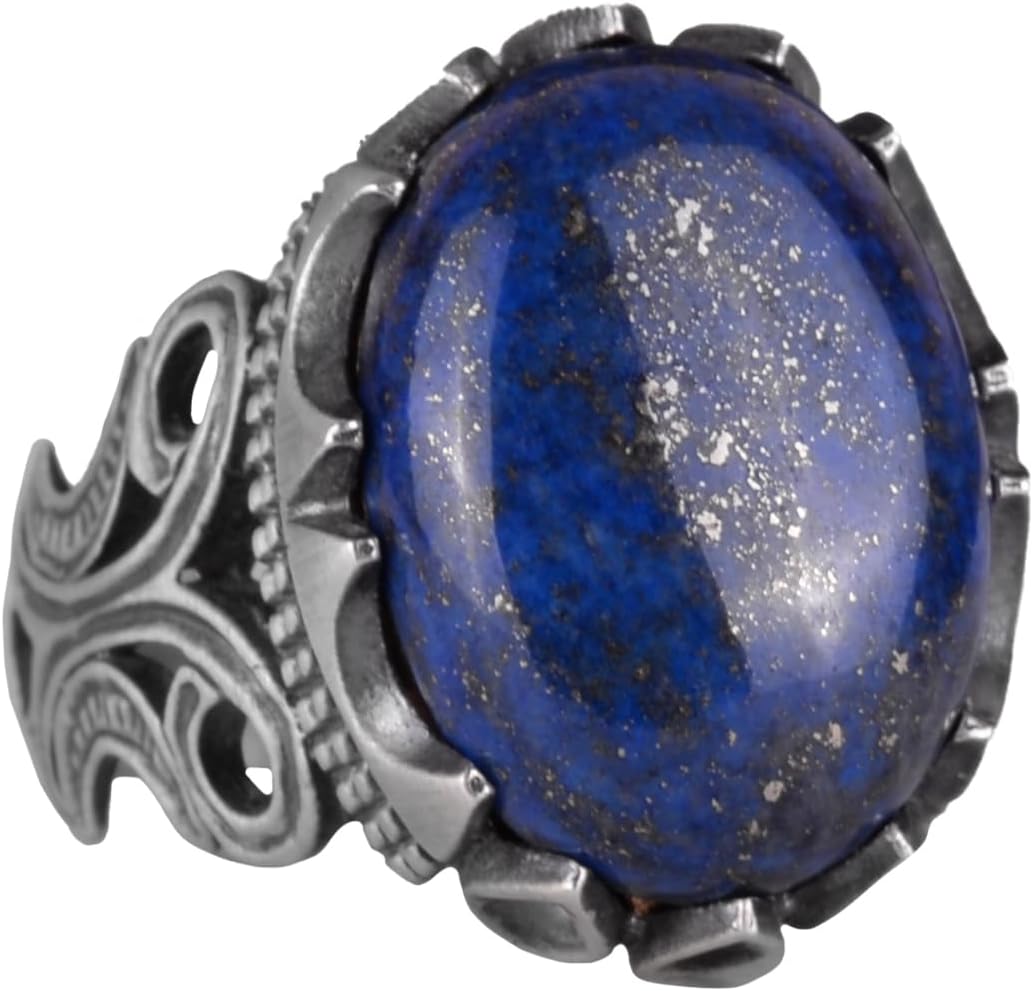 925 Ayar Katı Gümüş Erkek Yüzük - Doğal Taş Seçeneği ile El Yapımı Tasarım (Lapis Lazuli)