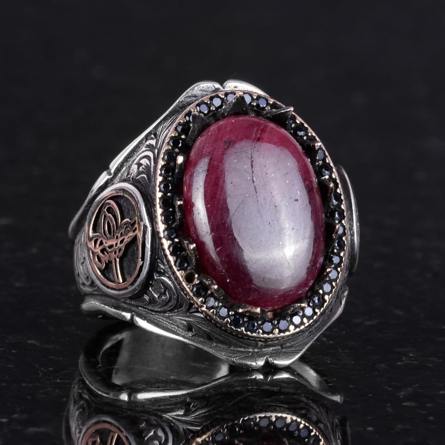 925 Ayar Katı Gümüş Erkek Yüzük - Doğal Taşlarla El Yapımı Şıklık (Cabochon Yakut Taşı)
