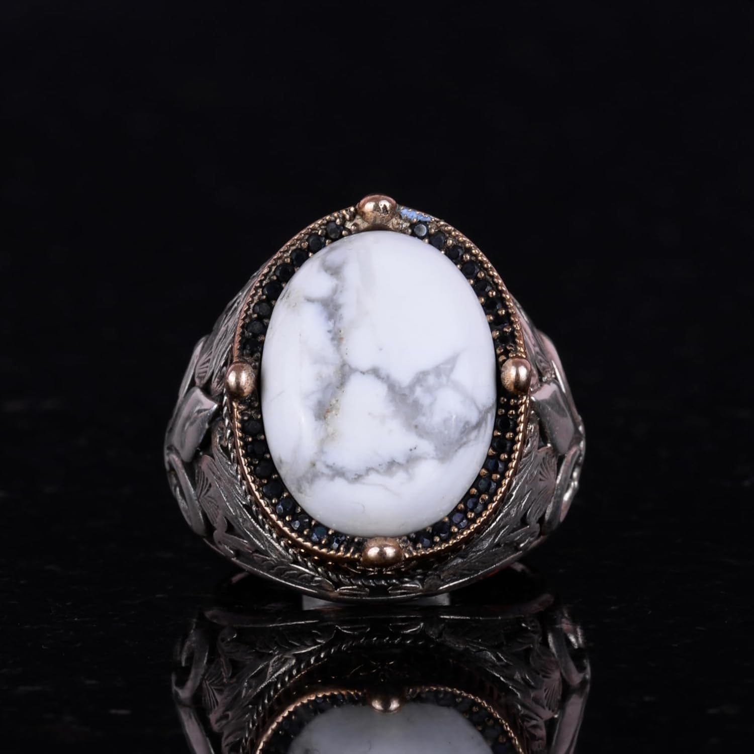 925 Ayar Gümüş El Yapımı Erkek Yüzük - Farklı Doğal Taşlarla Mevcut (Howlite)