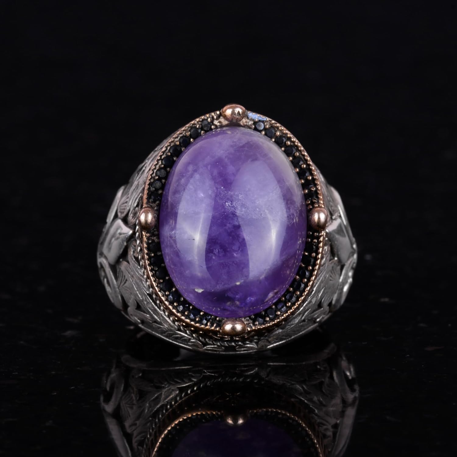 925 Ayar Gümüş El Yapımı Erkek Yüzük - Farklı Doğal Taşlarla Mevcuttur (Ametist)