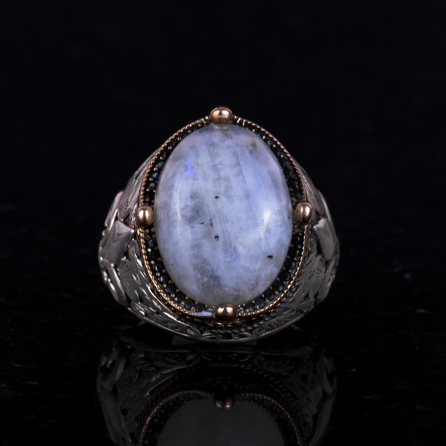 925 Ayar Gümüş El Yapımı Erkek Yüzük - Davut Yıldızı Yüzüğü (Üçlü Hilal)