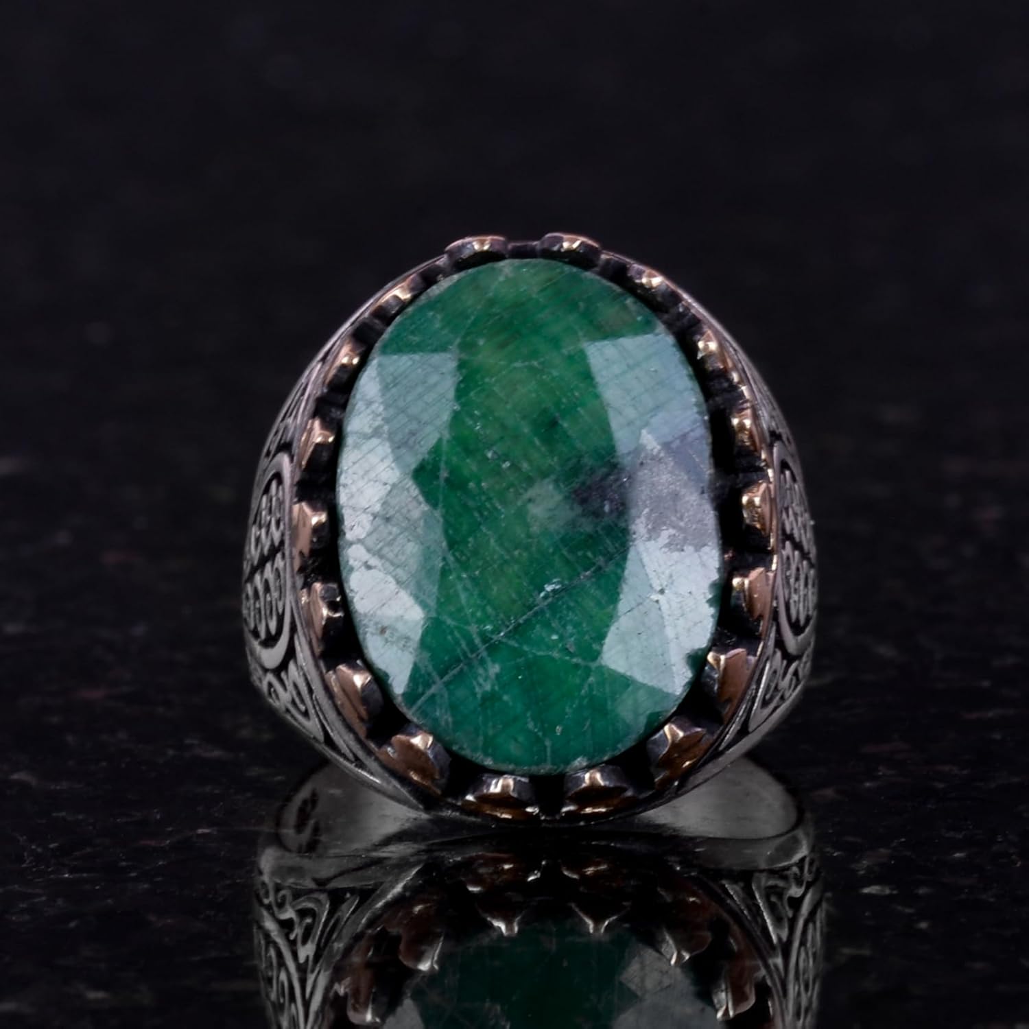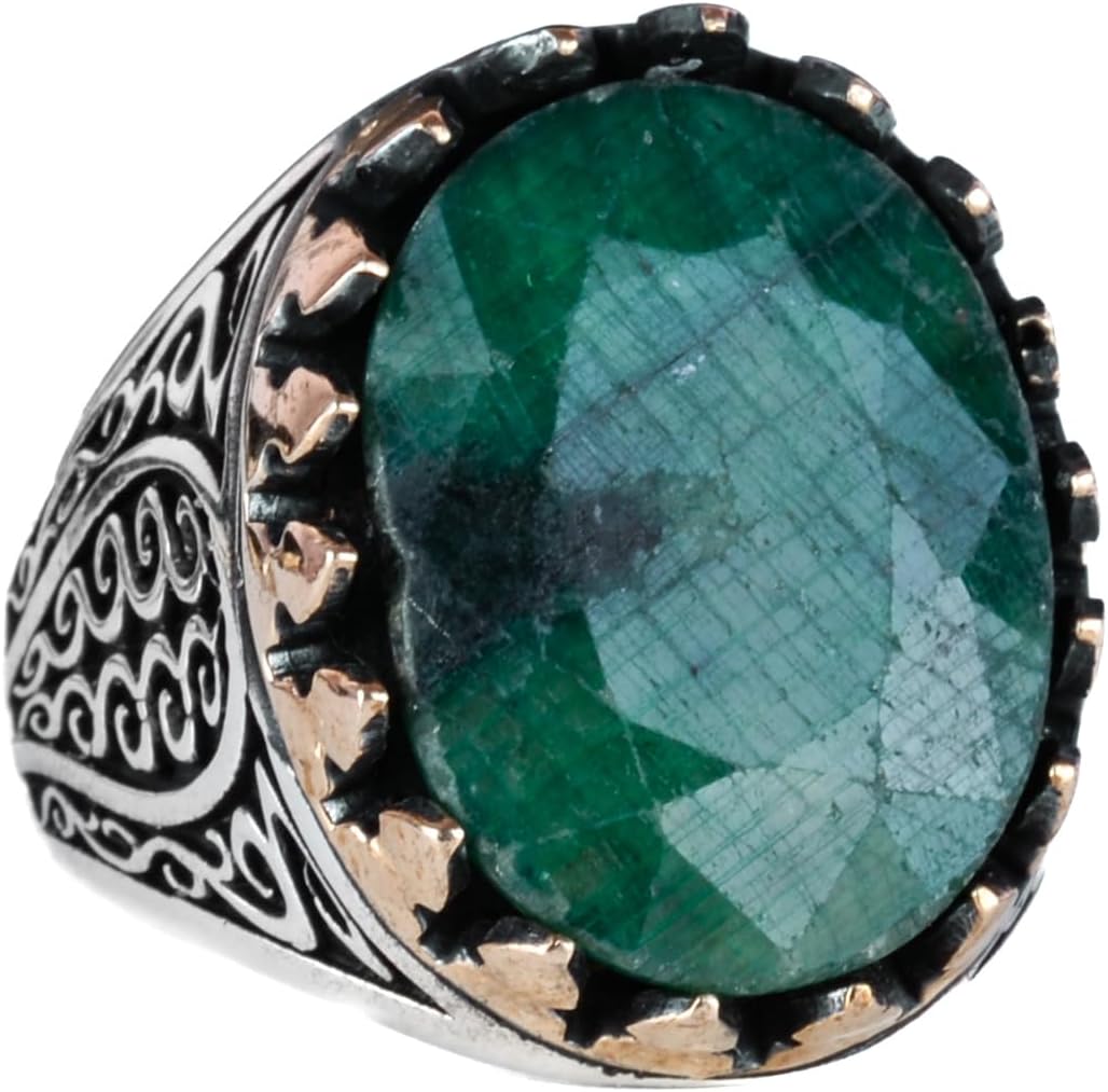 925 Ayar Katı Gümüş Erkek Yüzük - Doğal Taşlı El Yapımı Şıklık (Zümrüt Taşı)