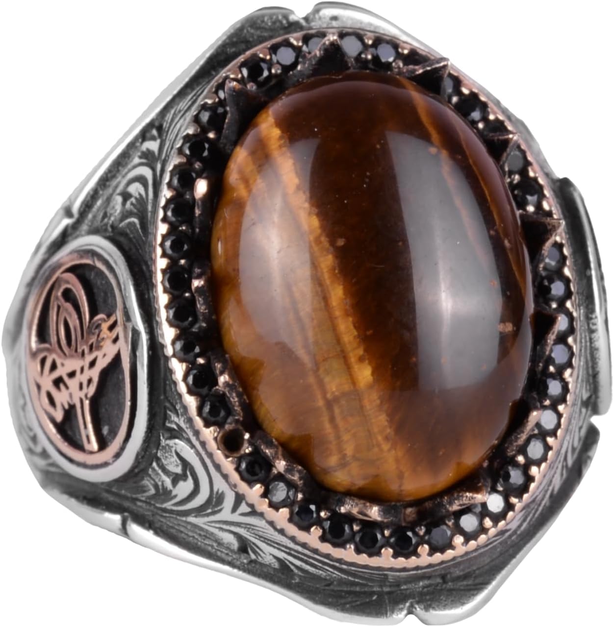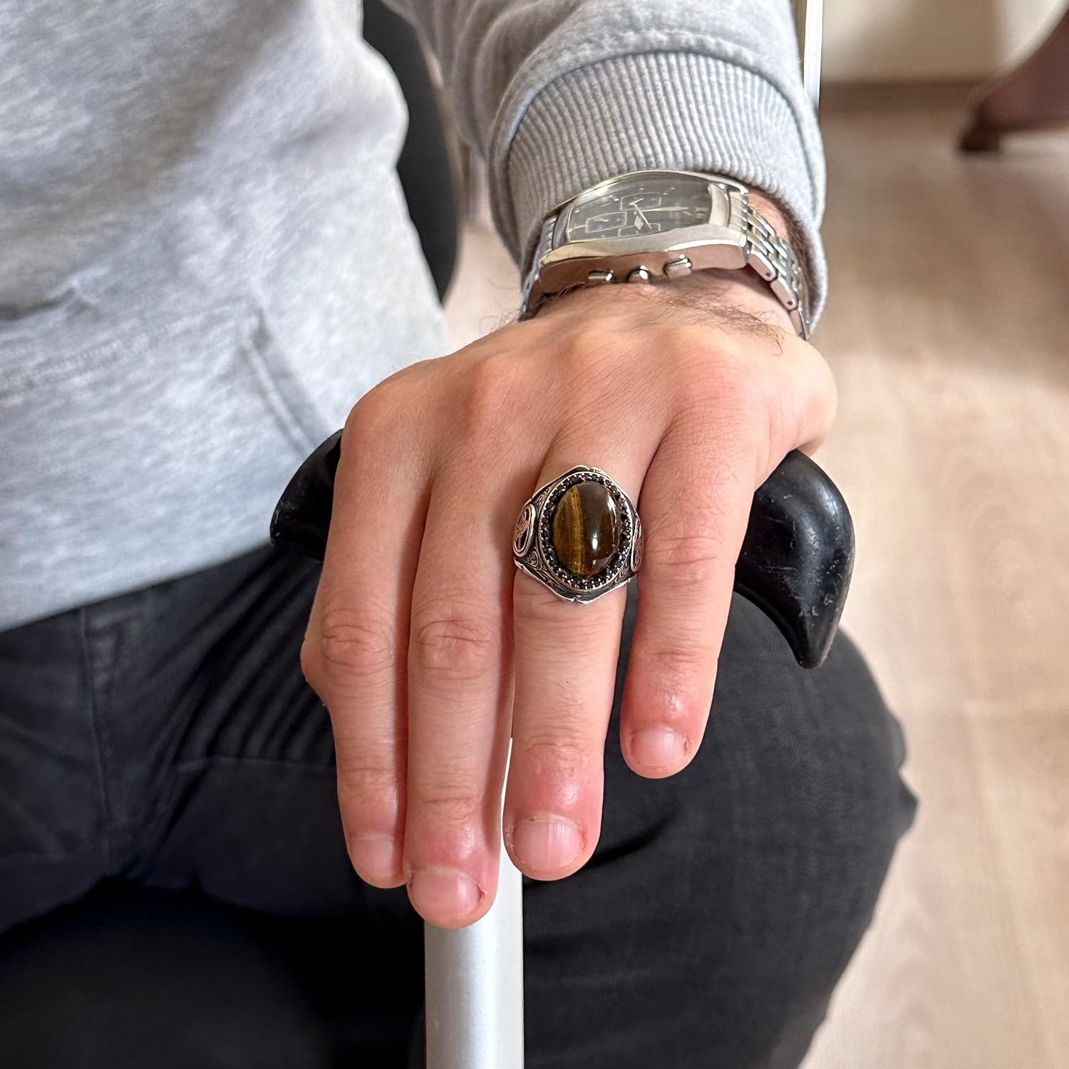 925 Ayar Katı Gümüş Erkek Yüzük - Doğal Taşlarla El Yapımı Şıklık (Kaplan Göz Taşı)