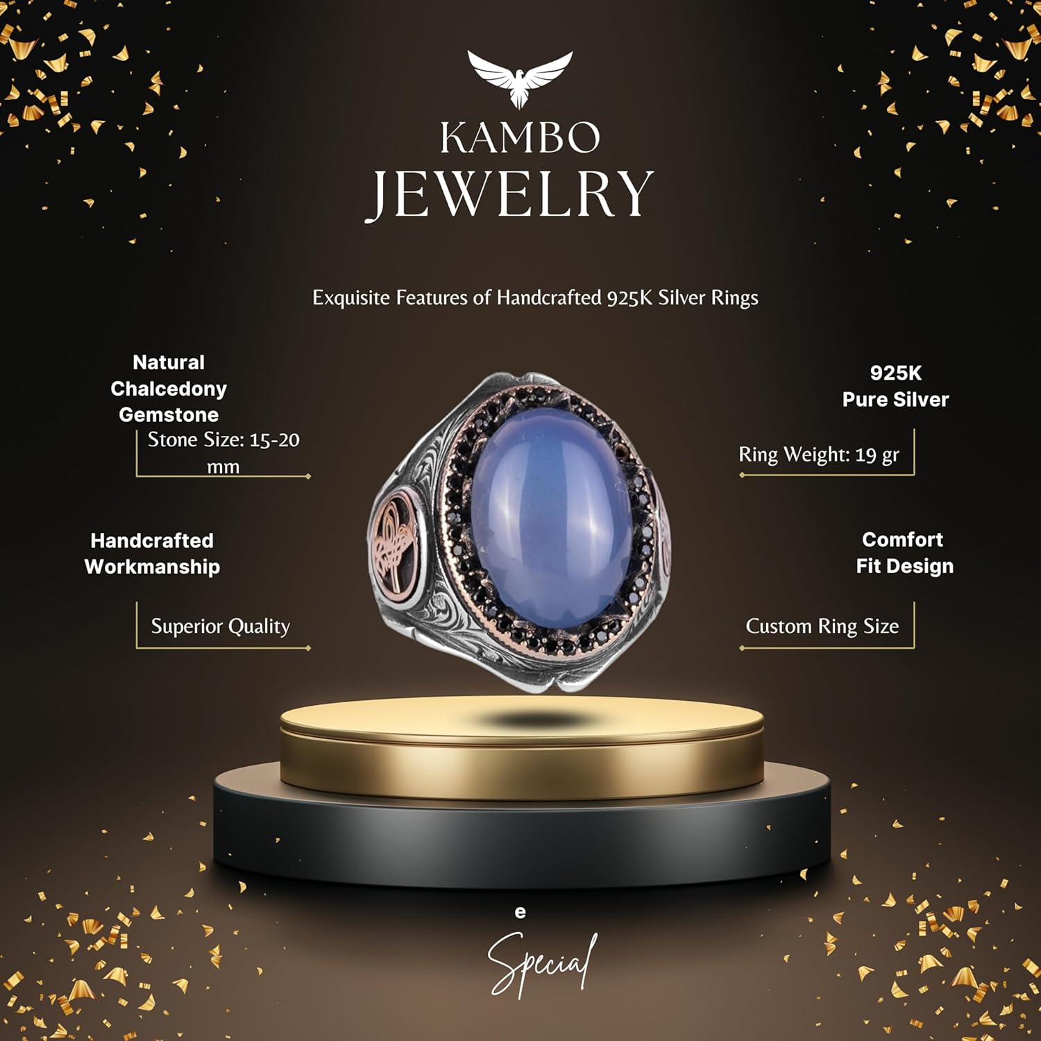 925 Ayar Katı Gümüş Erkek Yüzük - Doğal Taşlarla El Yapımı Şıklık (Kalsedon Taşı)