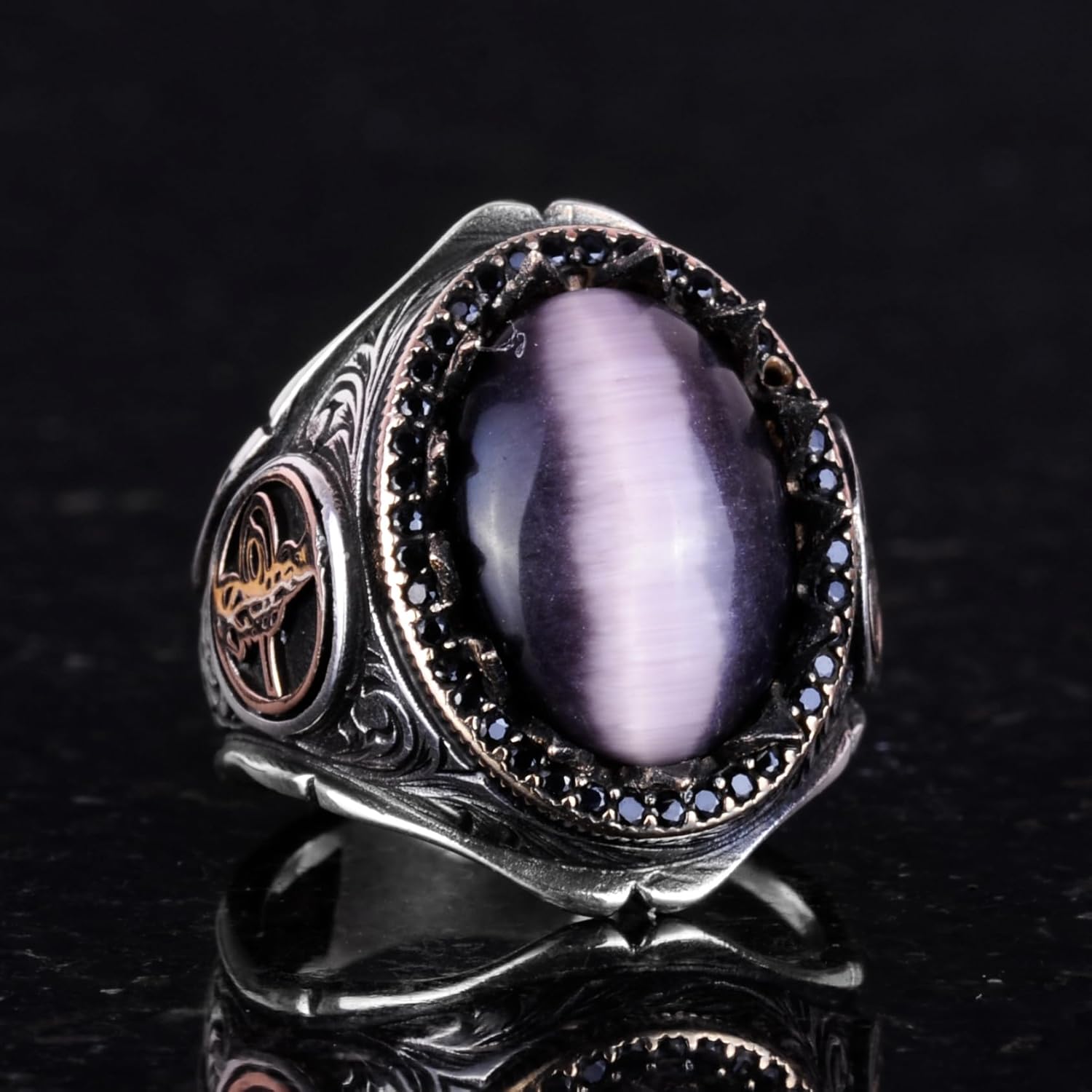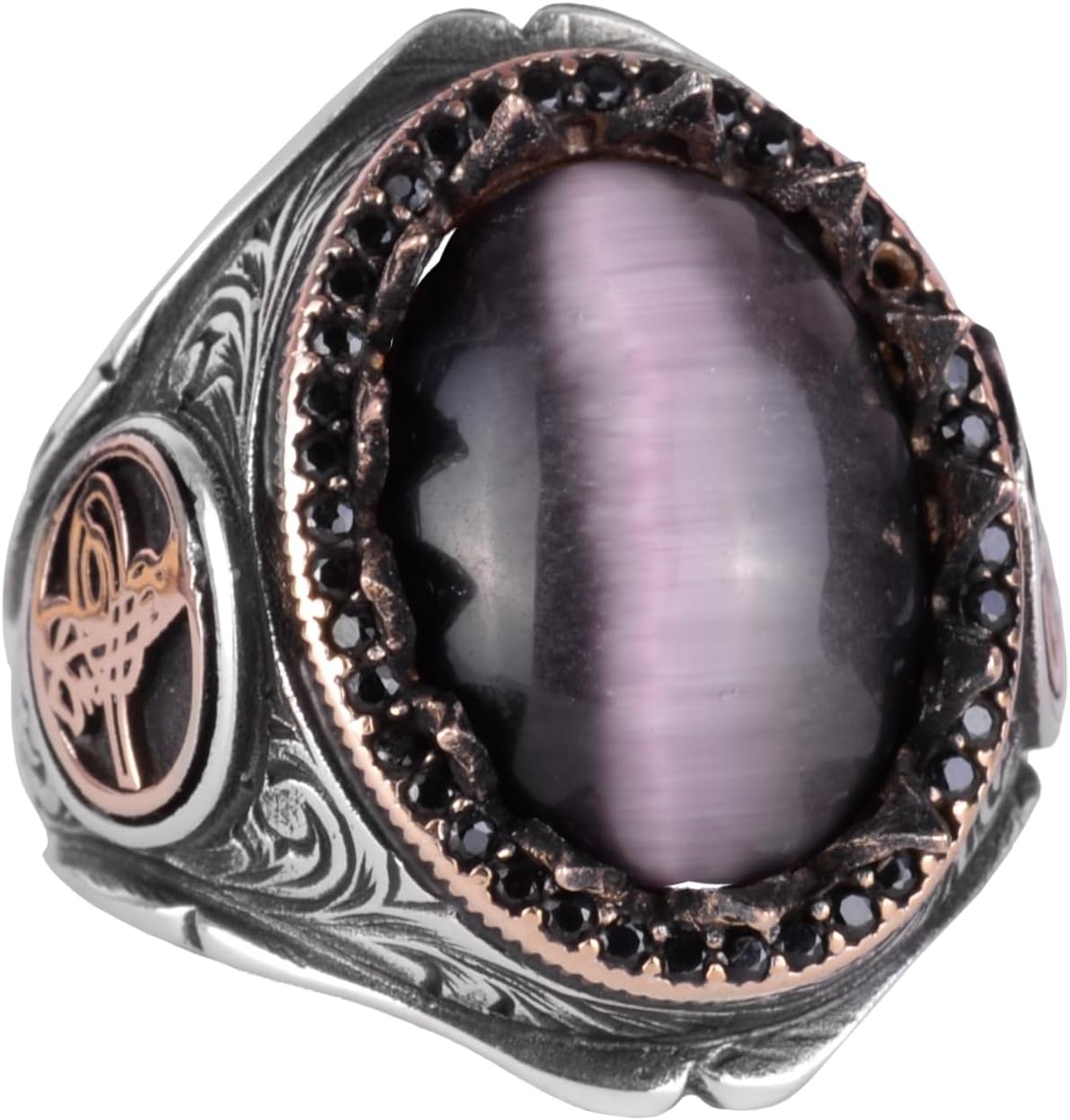 925 Ayar Katı Gümüş Erkek Yüzük - Doğal Taşlarla El Yapımı Şıklık (Mor Kedi Gözü Taşı)