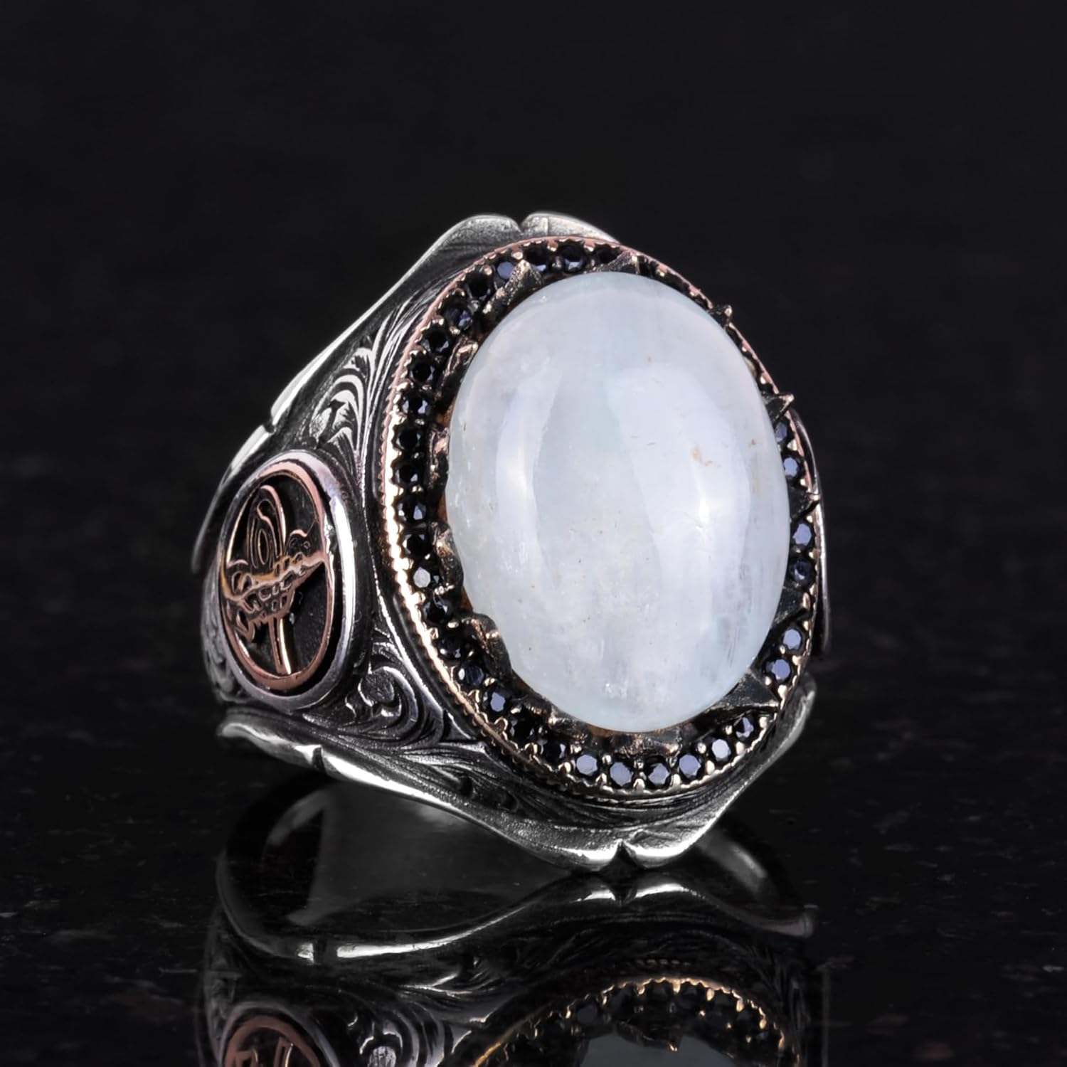 925 Ayar Katı Gümüş Erkek Yüzük - Doğal Taşlarla El Yapımı Zarafet (Akvamarin Taşı)