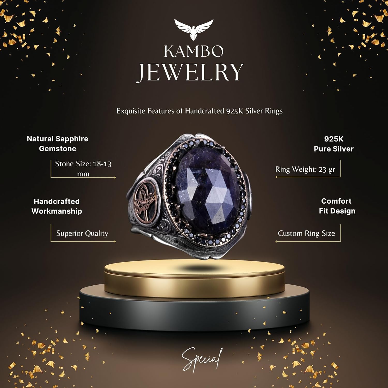 925 Ayar Katı Gümüş Erkek Yüzük - Doğal Taşlarla El Yapımı Zarafet (Mavi Safir Taşı)