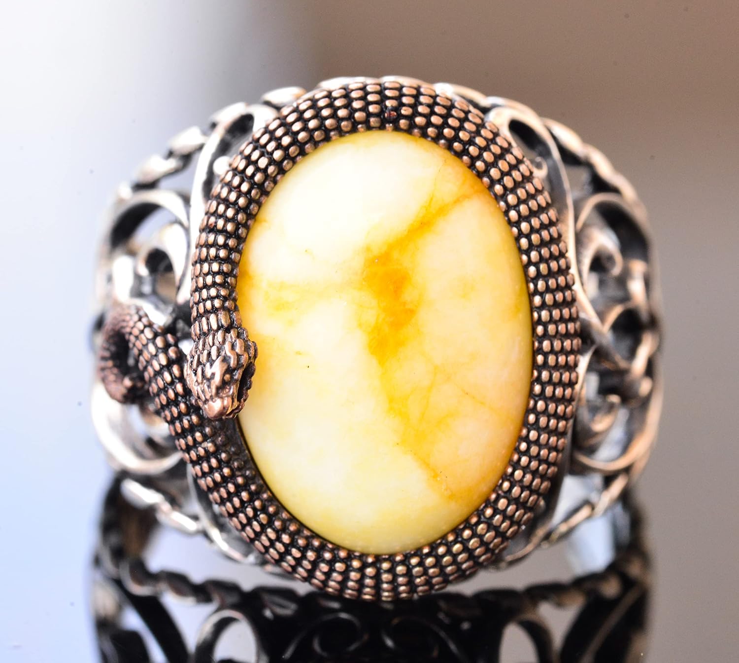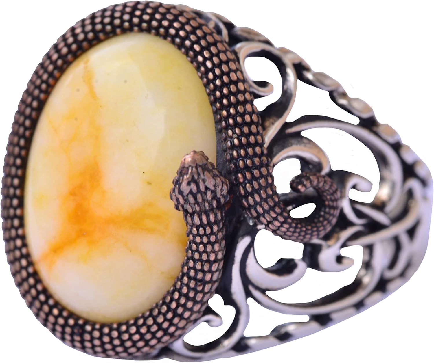 925 Ayar Katı Gümüş Erkek Yüzük - Doğal Taşlarla El Yapımı Şıklık (Sarı Ağaç Taşı)