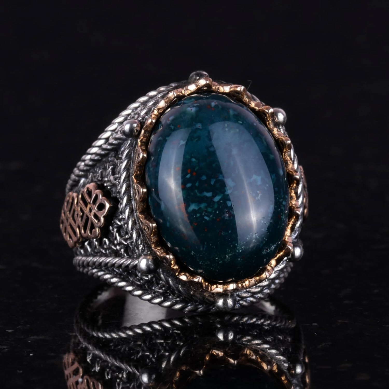 925 Ayar Saf Gümüş Yüzük, Erkekler İçin Gerçek Doğal Taş Yüzük (Yeşil Kan Taşı)