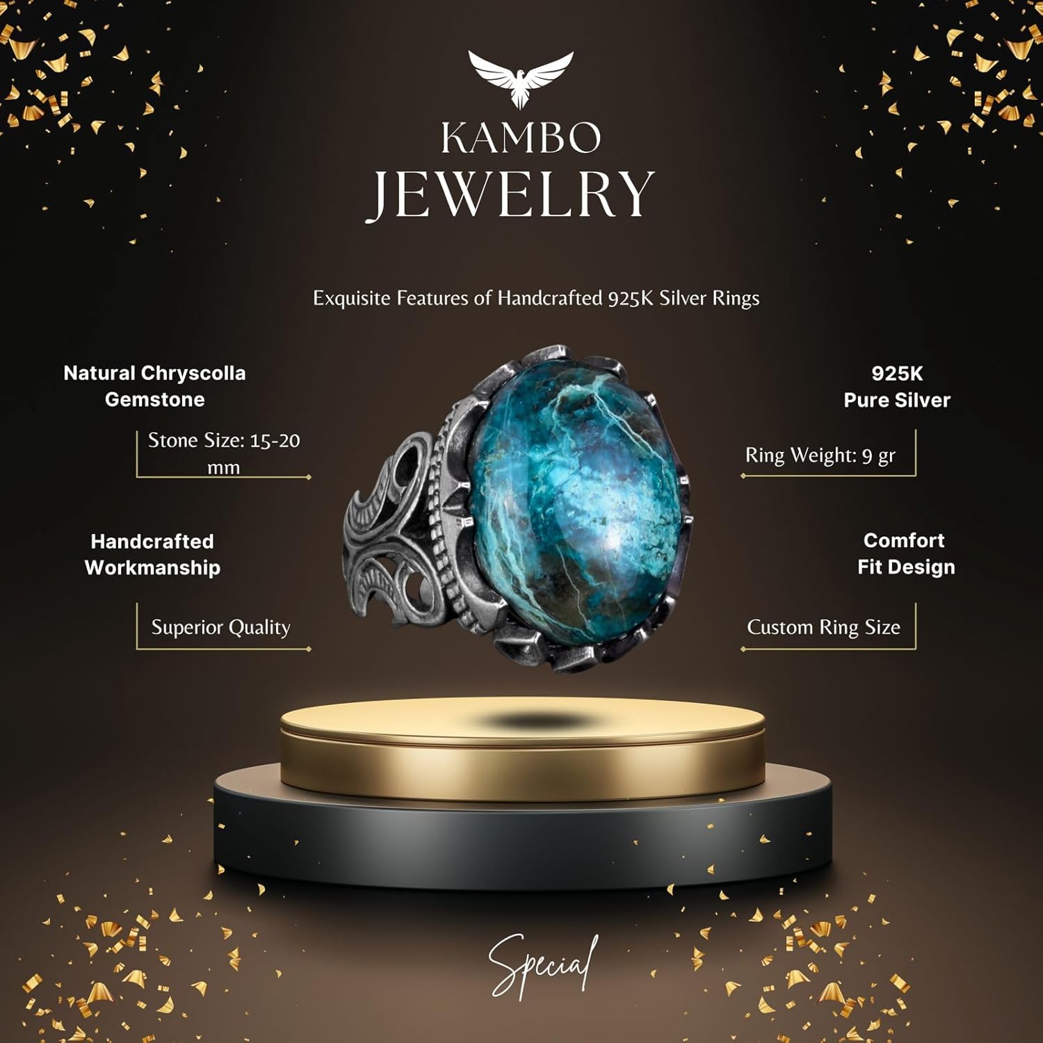 925 Ayar Sert Gümüş Erkek Yüzük - Doğal Taşlarla El Yapımı Zarafet (Krisokolla Taşı)