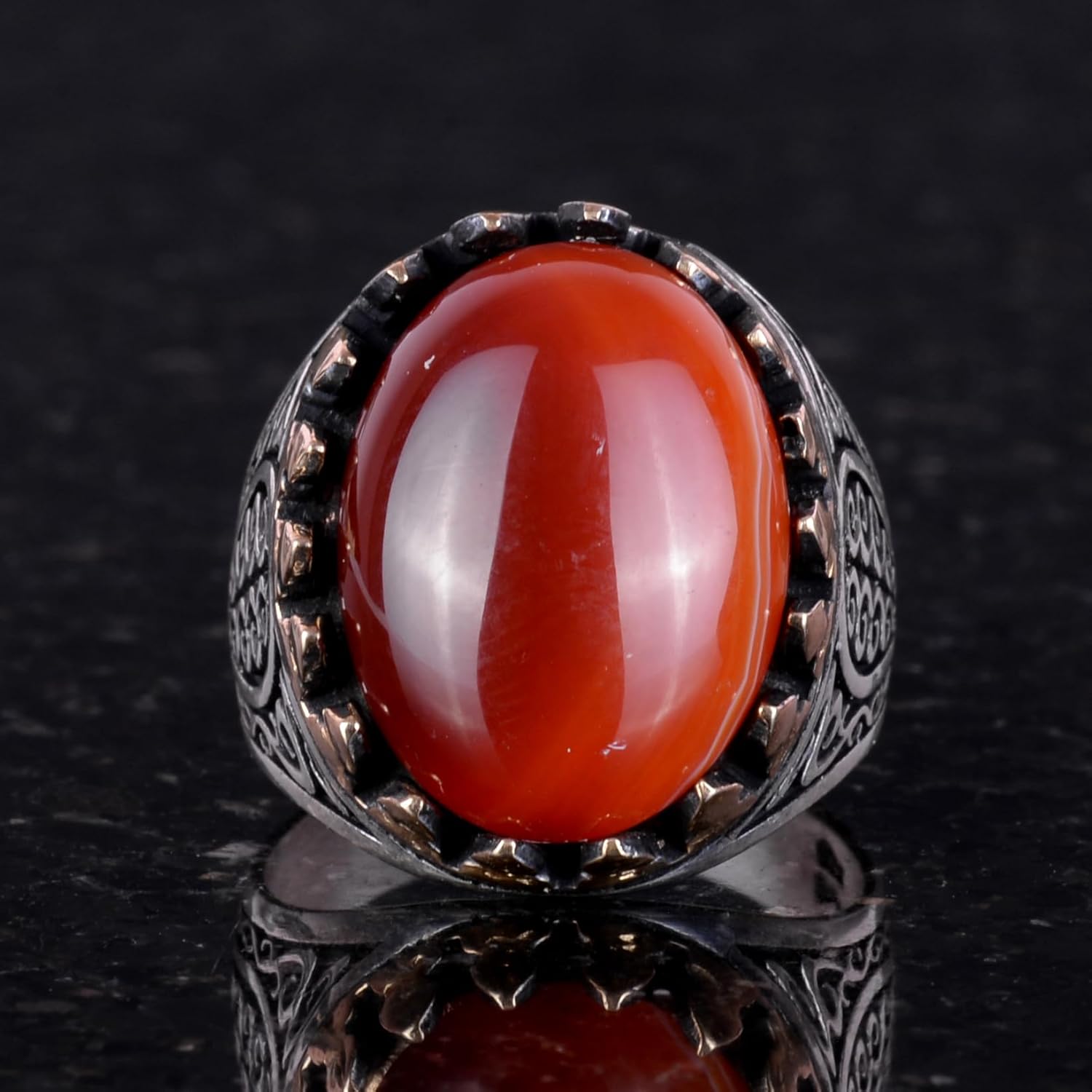 925 Ayar Sert Gümüş Erkek Yüzük - Doğal Kırmızı Akik Taşı ile El Yapımı Şıklık