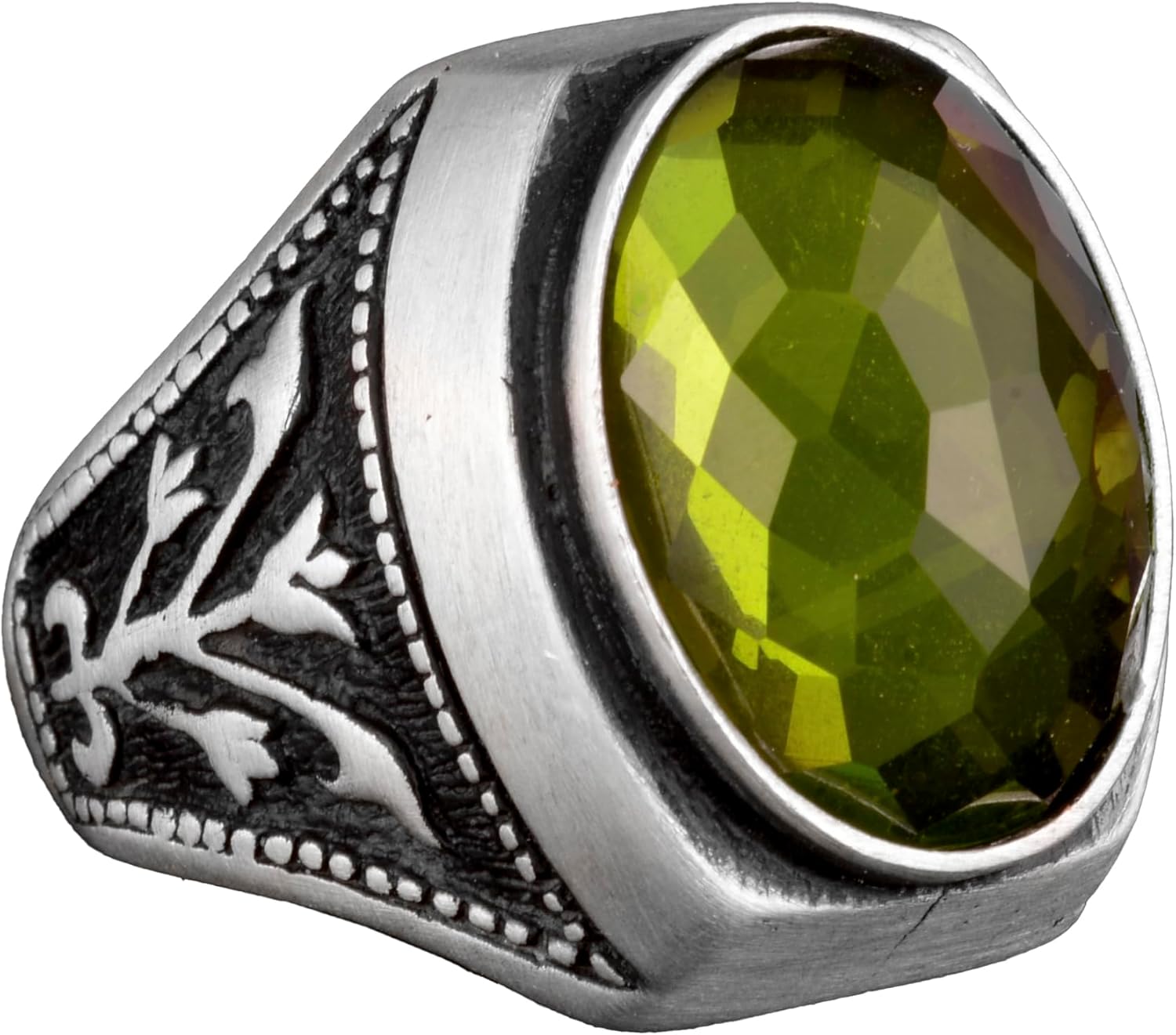 925 Ayar Katı Gümüş Yüzük, Yapay Peridot Taşlı Gümüş Erkek Yüzüğü