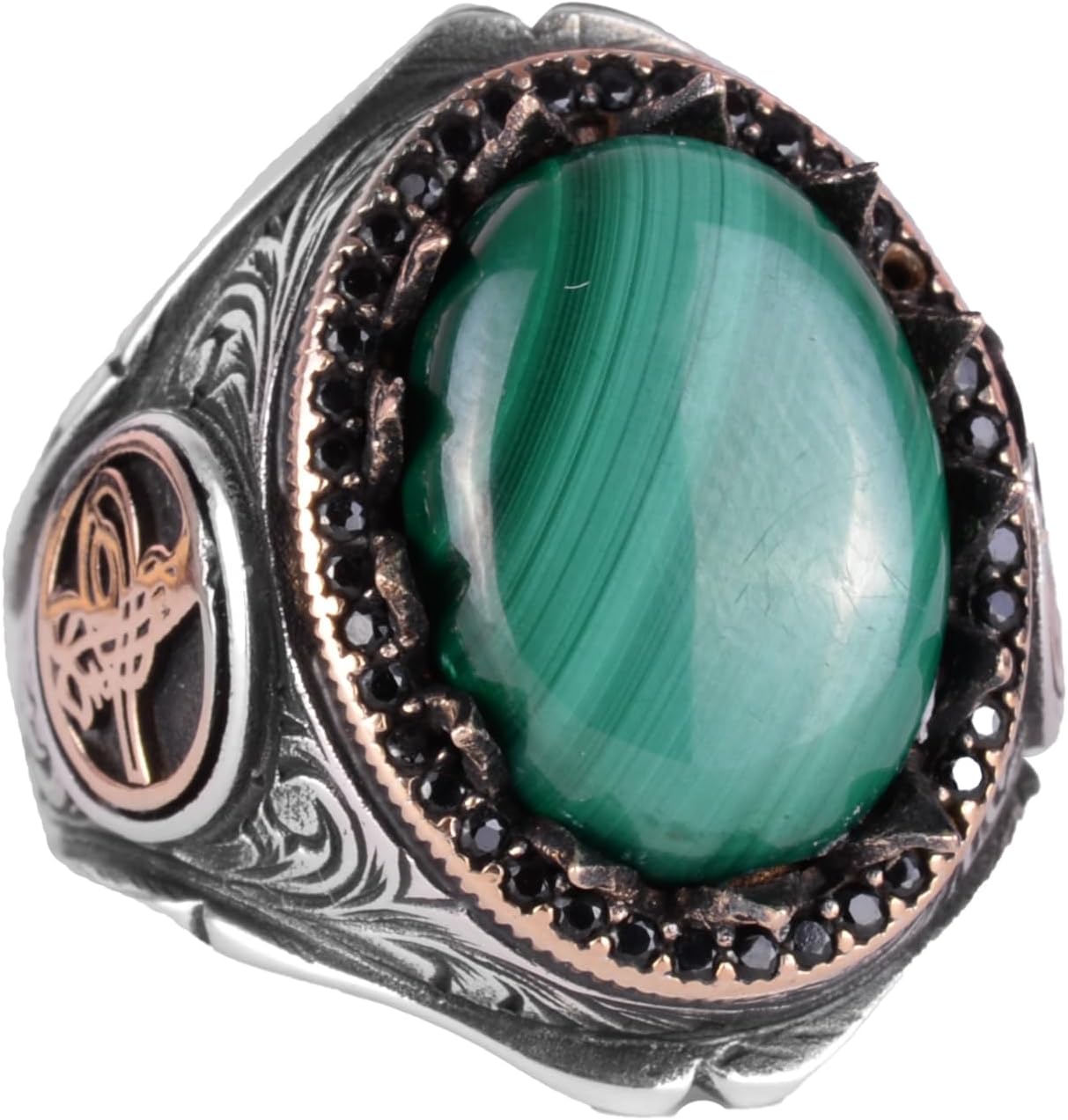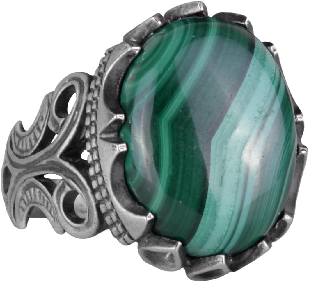 925 Ayar Saf Gümüş Erkek Yüzük - Doğal Taşlarla El Yapımı Şıklık (Malakit Taşı)