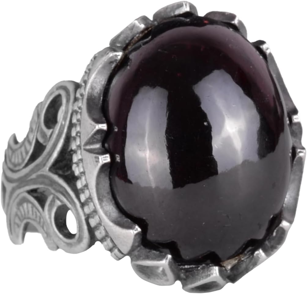 925 Ayar Sert Gümüş Erkek Yüzük - Doğal Taş Seçeneği ile El Yapımı Tasarım (Nar Çiçeği)