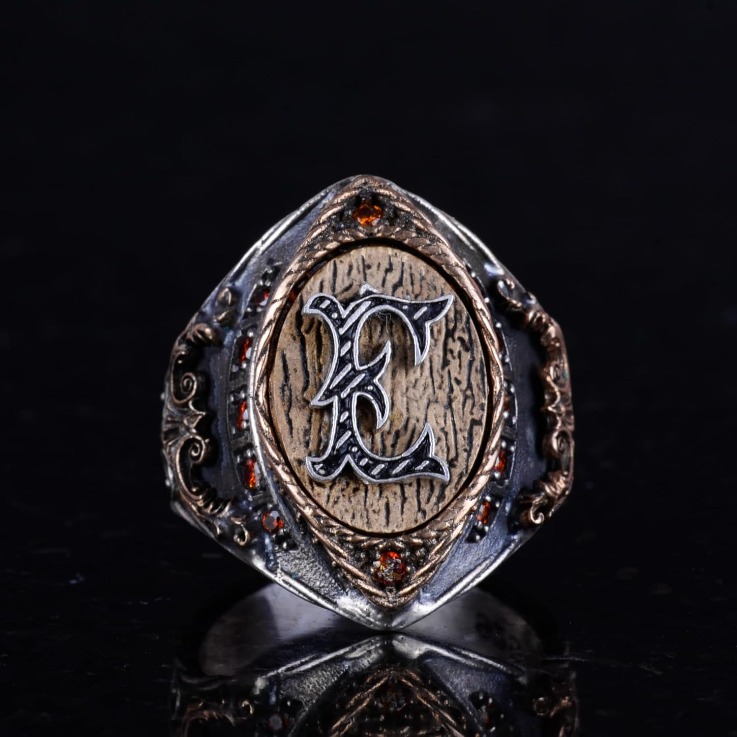 925 Ayar Katı Gümüş Yüzük, Yüzük Adam Yüzüğü, Monogram Yüzüğü, Özel El Yapımı Gümüş Erkek Yüzüğü