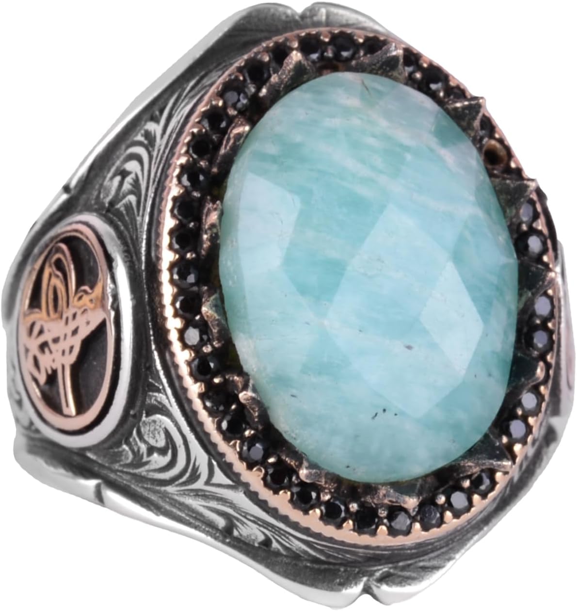 925 Ayar Sert Gümüş Erkek Yüzük Doğal Taşlarla - El Yapımı Şıklık (Amazonit Taşı)
