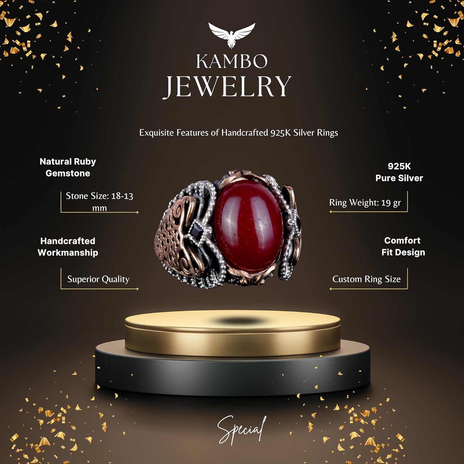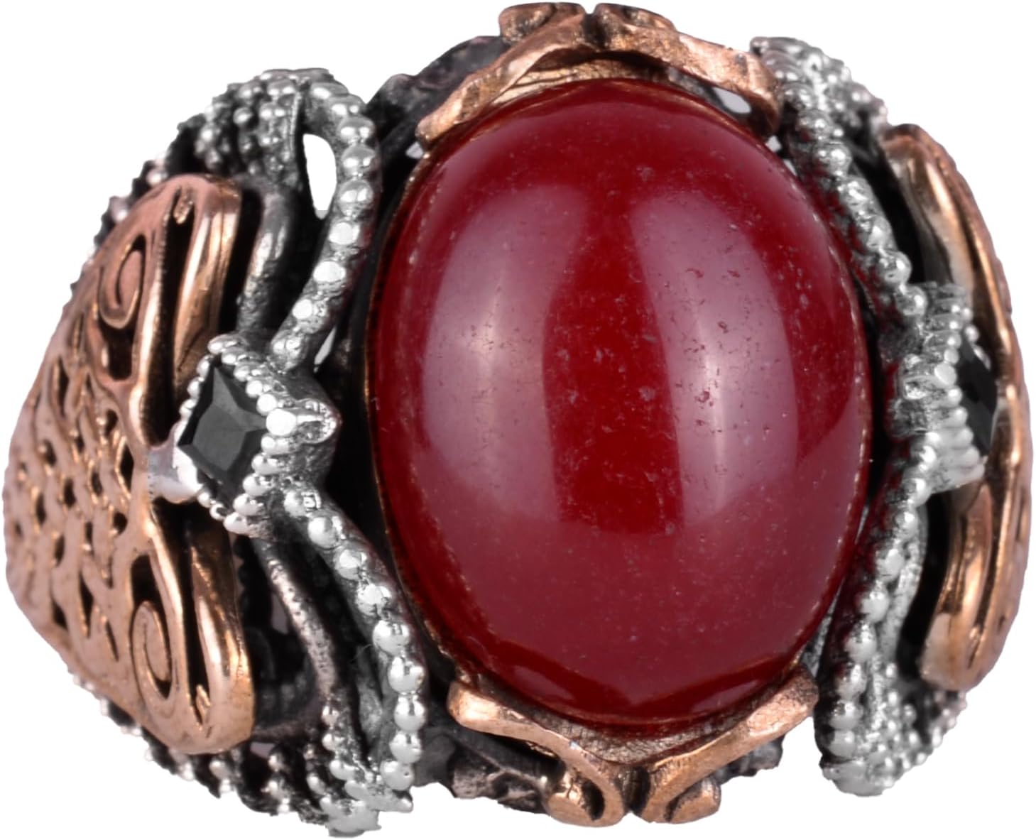 925 Ayar Sert Gümüş Yüzük, Doğal Cabochon Yakut Taş Yüzük
