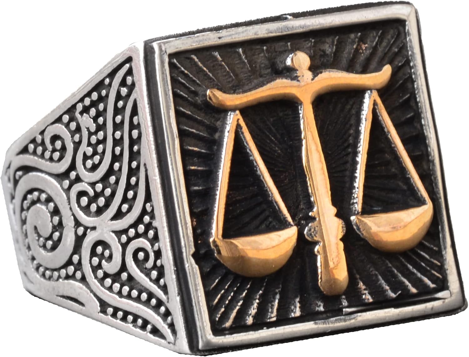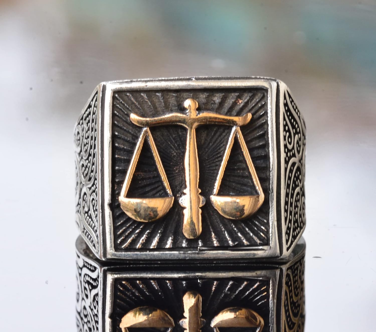 925 Ayar Sert Gümüş Erkek Yüzük, Adalet Terazisi Yüzüğü, Denge Yüzüğü, Erkekler İçin El Yapımı Yüzük