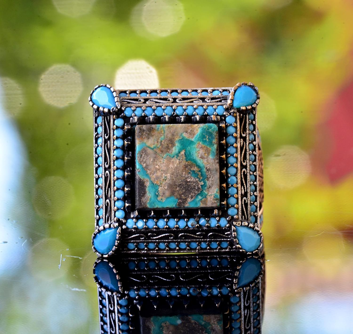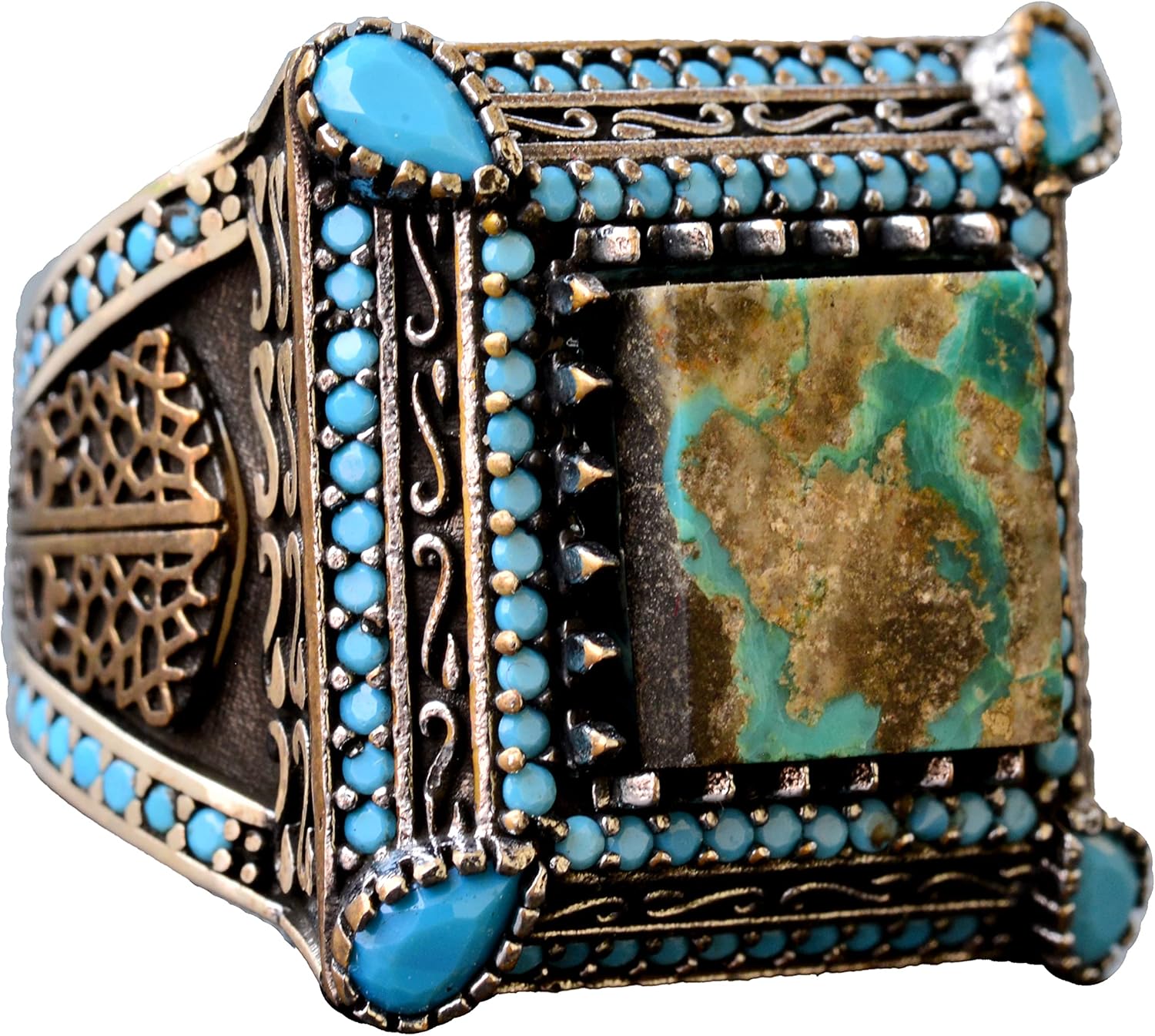 925 Ayar Sterling Gümüş Gerçek Arizona Turkuaz Taşı Erkek Yüzük - El Yapımı Takı