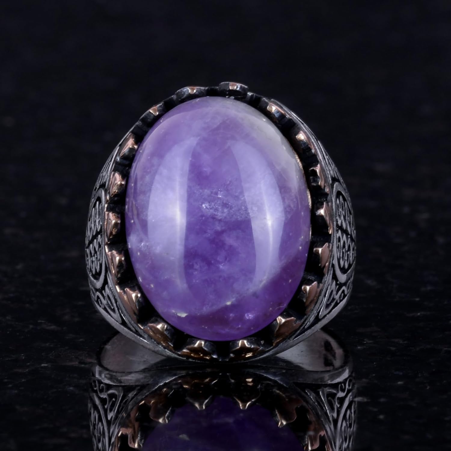 925 Ayar Sert Gümüş Erkek Yüzük - Doğal Taşlı El Yapımı Zarafet (Ametist Taşı)